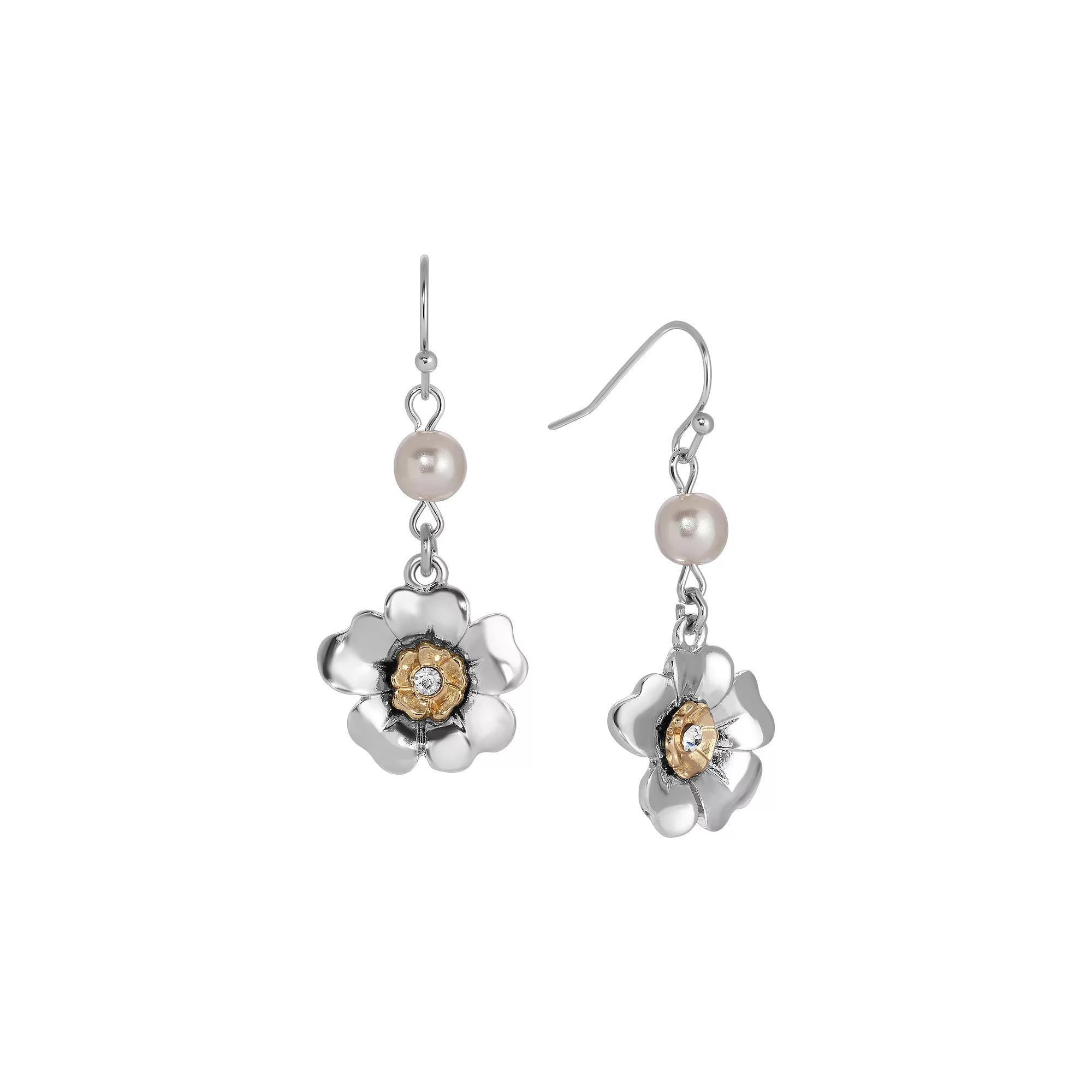 Add floral charm with these two-tone flower drop earrings accented by crystals and simulated pearls, perfect for any occasion. Click on this JEWELRY & WATCHES GUIDE to learn about fit, styles, materials and more! Add floral charm with these two-tone flower drop earrings accented by crystals and simulated pearls, perfect for any occasion. Click on this JEWELRY & WATCHES GUIDE to learn about fit, styles, materials and more! FEATURES Dimensions: 40 mm x 17 mm Backings: fishhook Nickel safe Metal: alloy Material: acrylic, crystal Plating: gold tone, silver tone Finish: polished Size: One Size. Color: Gray. Gender: female. Age Group: adult.