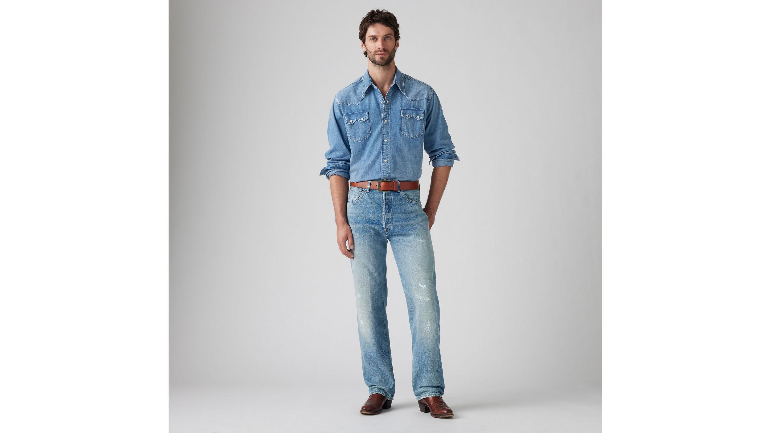 An homage to the ultimate thrill-seekers of the '50s: bikers. Our 1955 501® jeans have a distinct “anti-fit” (or, slightly looser cut that stands in opposition to slimmer and skinnier styles) in the seat, as well as a slightly fuller cut around the leg and an overall boxier silhouette. This version of the 501® still retains some classic features of its 1947 predecessor: belt loops as the only method of waist adjustment, hidden copper rivets on the back pockets, and a zinc button fly.We pay tribute to the epitome of American rebellion with these 1955 501® Original jeans—an archival reproduction of their jeans of choice, crafted in premium selvedge denim.An archival reproduction of 1955 501® jeansTrue to classic biker style, it features a loose, boxy "anti-fit" styleWe worked with a Japanese artisan mill to painstakingly recreate 1950s Levi’s® selvedge denimTwo back pockets with concealed rivetsWe made this garment with organically grown cotton