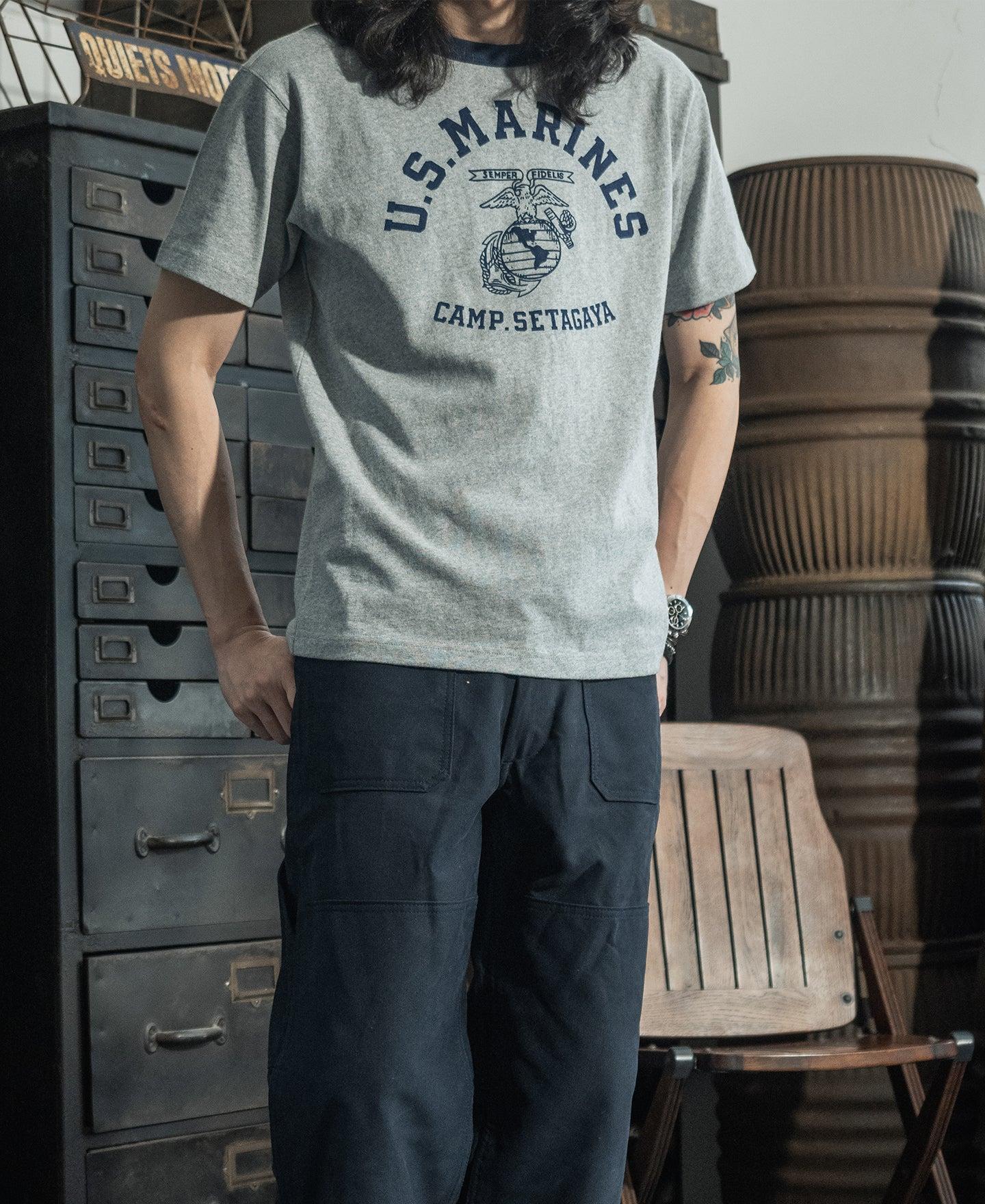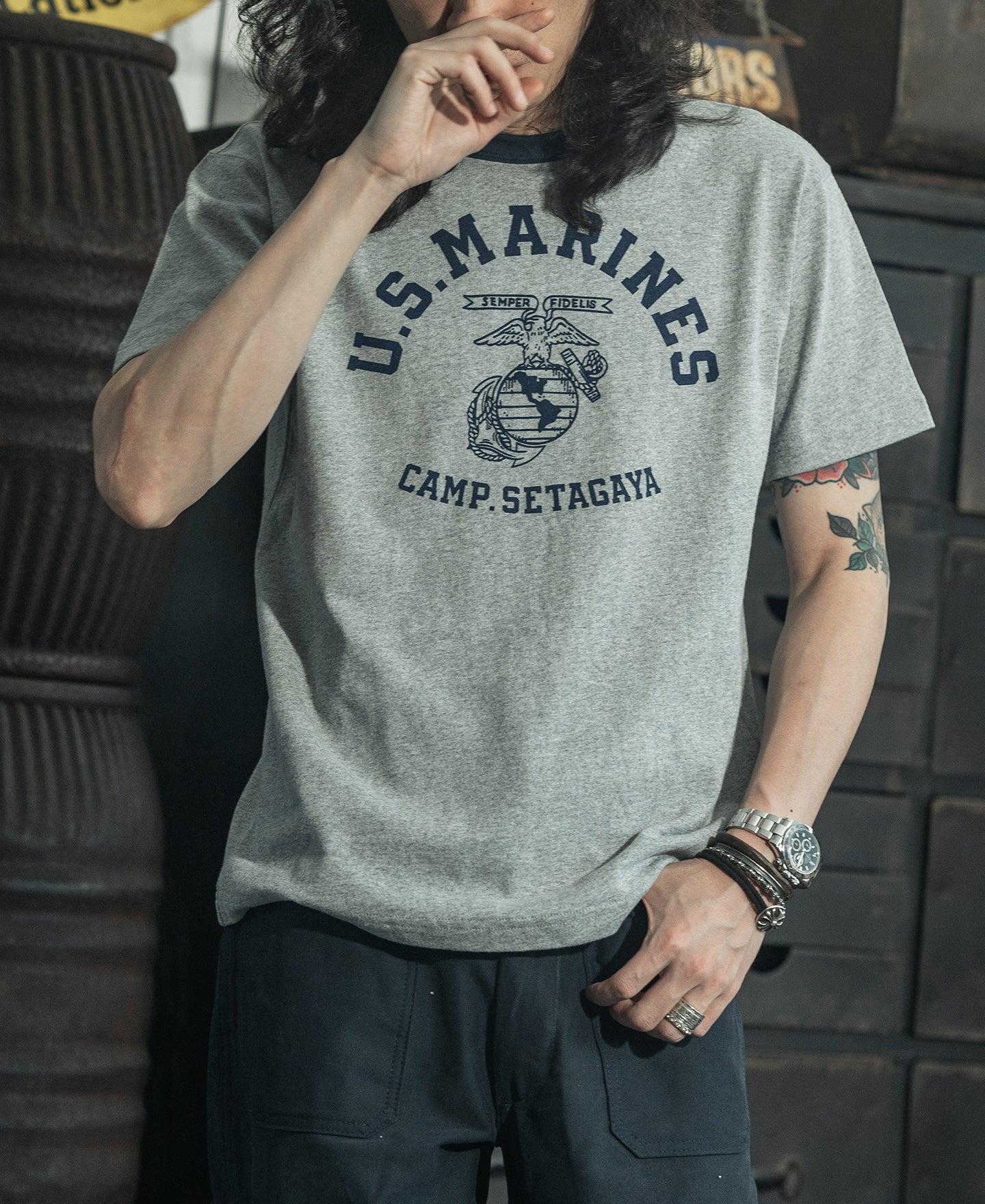 ◄DESCRIPTION It bears the 1970s USMC eagle emblem. Below the emblem, "SETAGAYA" is printed. At the back, it has a less conspicuous "U.S. MARINE" inscription. The distinctive prints catch the eye, these prints showcase the strength and glory of the military. The fabric is made of 9 oz of 100% cotton, using 10 yarns with air-jet spun, the graphic uses water-based screen printing. Designed with a classic fit style, it offers excellent breathability and is ideal for daily wear. ◄DETAILS Crew Neck. Short Sleeve. Hand-drawn style pattern. 9 oz air-jet spun fabric, 100% cotton. Machine washable and avoid exposure to direct sunlight. ◄SIZE & FIT Please use this info as a general guide as measurements are approximate. Model is 5' 10"/ 178cm and 136lbs/ 62kg. Wears a size M. Size Shoulder Chest S 17.3" / 44cm 38.6" / 98cm M 17.9" / 45.5cm 40.6" / 103cm L 18.5" / 47cm 42.5" / 108cm XL 19.3" / 49cm 44.5" / 113cm XXL 20.1" / 51cm 46.5" / 118cm Size Sleeve Length S 7.5" / 19cm 25.6" / 65cm M 7.9" / 20cm 26.4" / 67cm L 8.3" / 21cm 27.2" / 69cm XL 8.7" / 22cm 28" / 71cm XXL 9.3" / 23.5cm 28.5" / 72.5cm In order to best determine fit, it may be helpful to compare our garment’s measurements to a similar garment you already own. Lay your garment on a flat surface and take all measurements from the outside of the garment. Click here to check out our Garment Measuring Guide. ** If you are still confused, you can Contact Us to help you choose the size. ** ◄SHIPPING & RETURNS Free shipping on orders $99 (U.S. dollar), Otherwise, a shipping fee of $6.99 will be charged. Click here to see our full shipping policy. BRONSON offers 30 days returning period. Click here to see our full return & exchange policy. * All items must be returned in unused, original condition with tags attached. ◄FAQ Haven't found the answer you are looking for? Take a look at our Frequently Asked Questions or Contact Us.