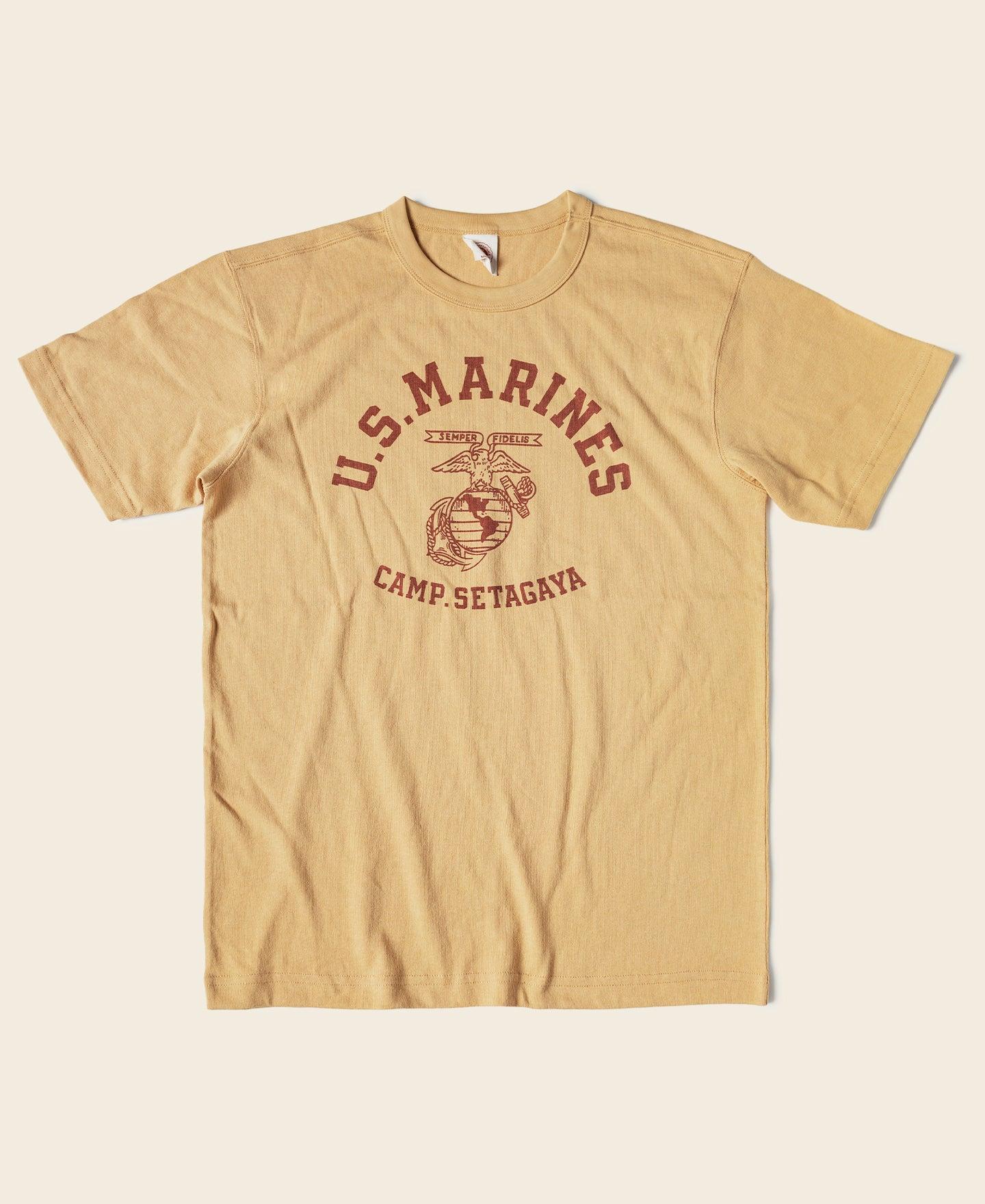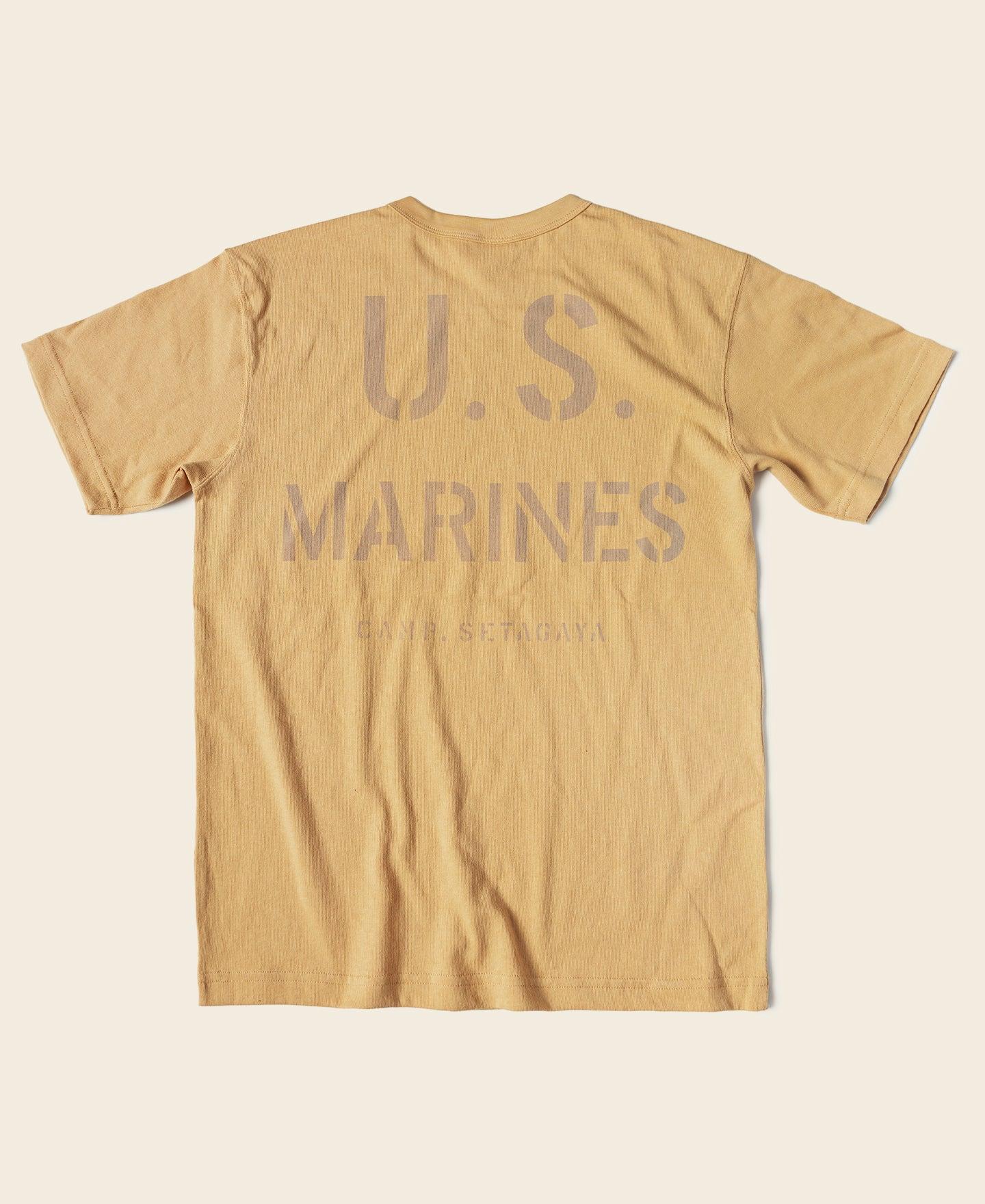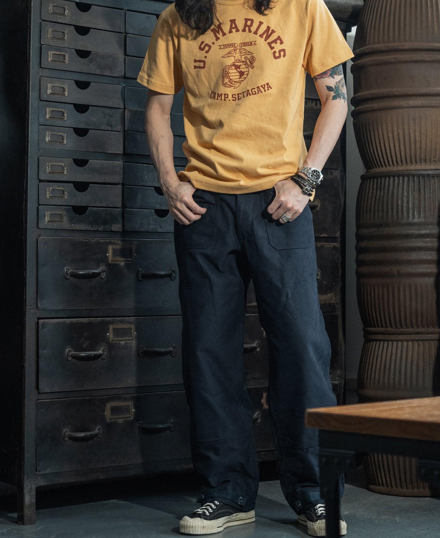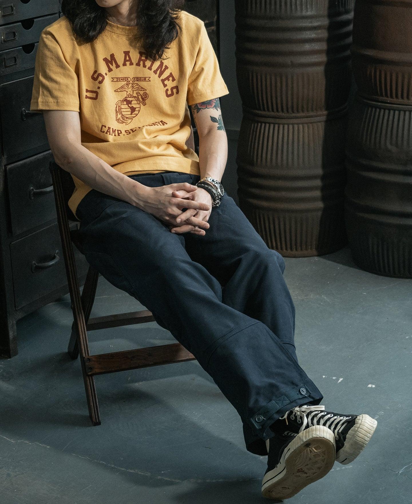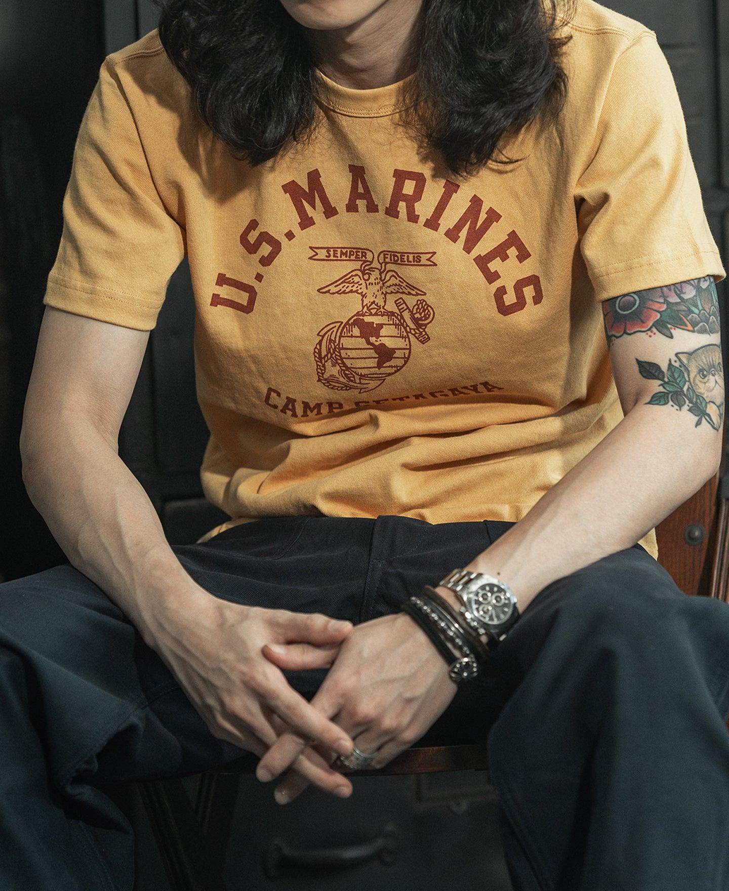◄DESCRIPTION It bears the 1970s USMC eagle emblem. Below the emblem, "SETAGAYA" is printed. At the back, it has a less conspicuous "U.S. MARINE" inscription. The distinctive prints catch the eye, these prints showcase the strength and glory of the military. The fabric is made of 9 oz of 100% cotton, using 10 yarns with air-jet spun, the graphic uses water-based screen printing. Designed with a classic fit style, it offers excellent breathability and is ideal for daily wear. ◄DETAILS Crew Neck. Short Sleeve. Hand-drawn style pattern. 9 oz air-jet spun fabric, 100% cotton. Machine washable and avoid exposure to direct sunlight. ◄SIZE & FIT Please use this info as a general guide as measurements are approximate. Model is 5' 10"/ 178cm and 136lbs/ 62kg. Wears a size M. Size Shoulder Chest S 17.3" / 44cm 38.6" / 98cm M 17.9" / 45.5cm 40.6" / 103cm L 18.5" / 47cm 42.5" / 108cm XL 19.3" / 49cm 44.5" / 113cm XXL 20.1" / 51cm 46.5" / 118cm Size Sleeve Length S 7.5" / 19cm 25.6" / 65cm M 7.9" / 20cm 26.4" / 67cm L 8.3" / 21cm 27.2" / 69cm XL 8.7" / 22cm 28" / 71cm XXL 9.3" / 23.5cm 28.5" / 72.5cm In order to best determine fit, it may be helpful to compare our garment’s measurements to a similar garment you already own. Lay your garment on a flat surface and take all measurements from the outside of the garment. Click here to check out our Garment Measuring Guide. ** If you are still confused, you can Contact Us to help you choose the size. ** ◄SHIPPING & RETURNS Free shipping on orders $99 (U.S. dollar), Otherwise, a shipping fee of $6.99 will be charged. Click here to see our full shipping policy. BRONSON offers 30 days returning period. Click here to see our full return & exchange policy. * All items must be returned in unused, original condition with tags attached. ◄FAQ Haven't found the answer you are looking for? Take a look at our Frequently Asked Questions or Contact Us.