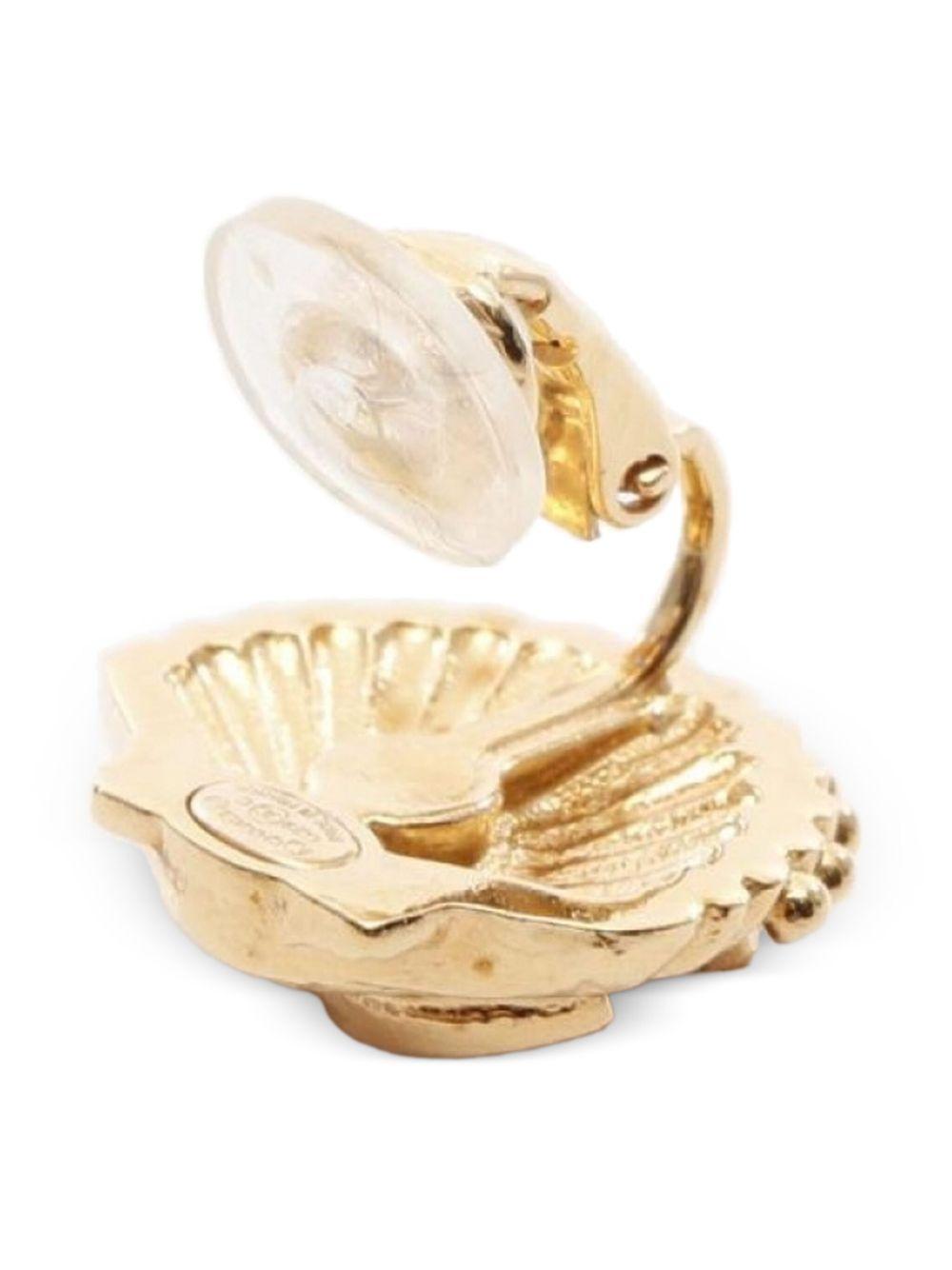 CHANEL Pre-Owned 1986-1988 Coco Mark earrings | Gold | 1986-1988 | gold-tone | shell design | rhinestone embellishment | clip-on fastening | These earrings come as a pair. | Condition: EXCELLENT. This previously owned item is in near-perfect condition with no signs of damage or use. | Gold Plated | Pre-Owned Jewelry | Pre-Owned | Women