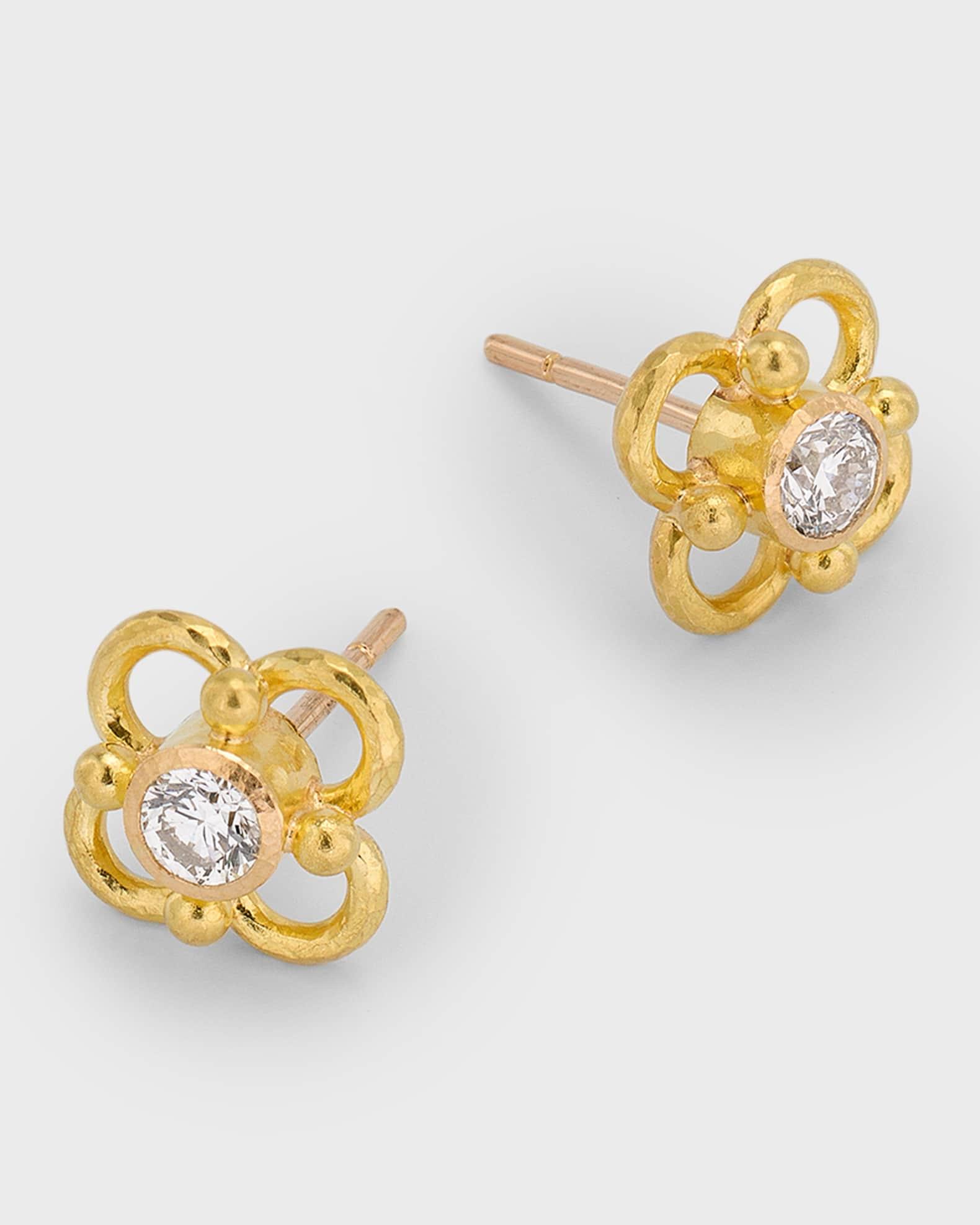 19K Round 4mm Diamond Stud Earrings with Wire Arches