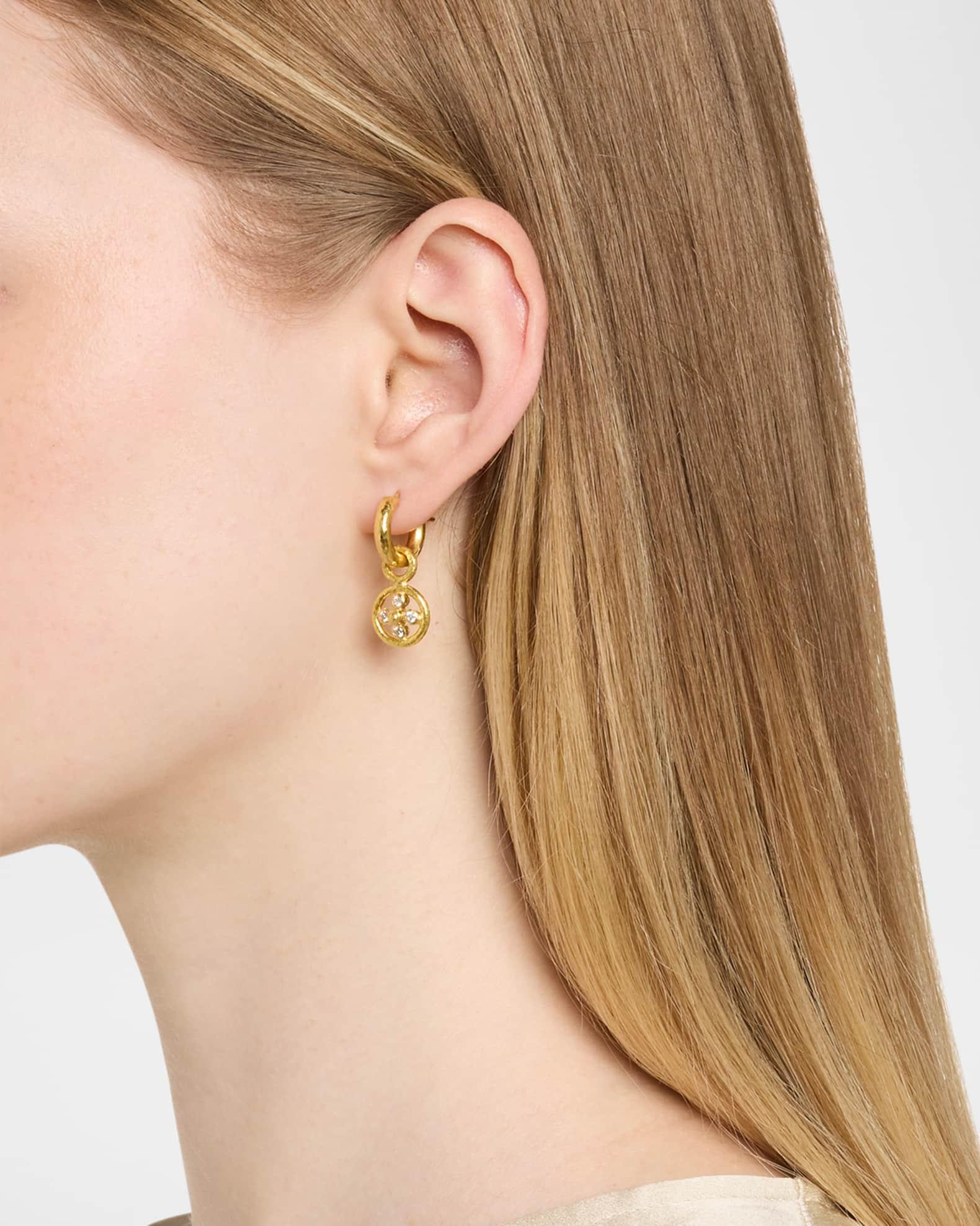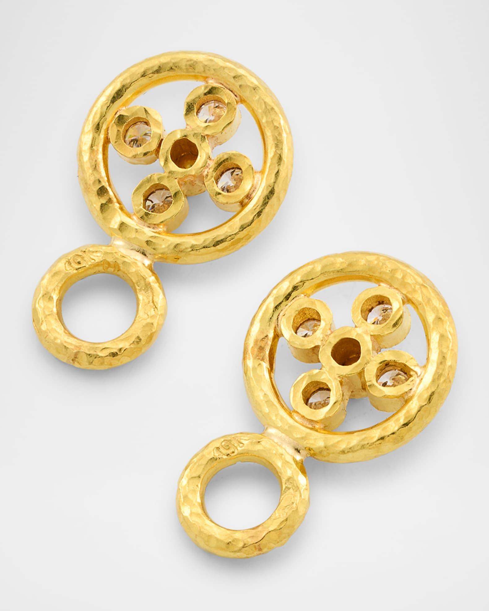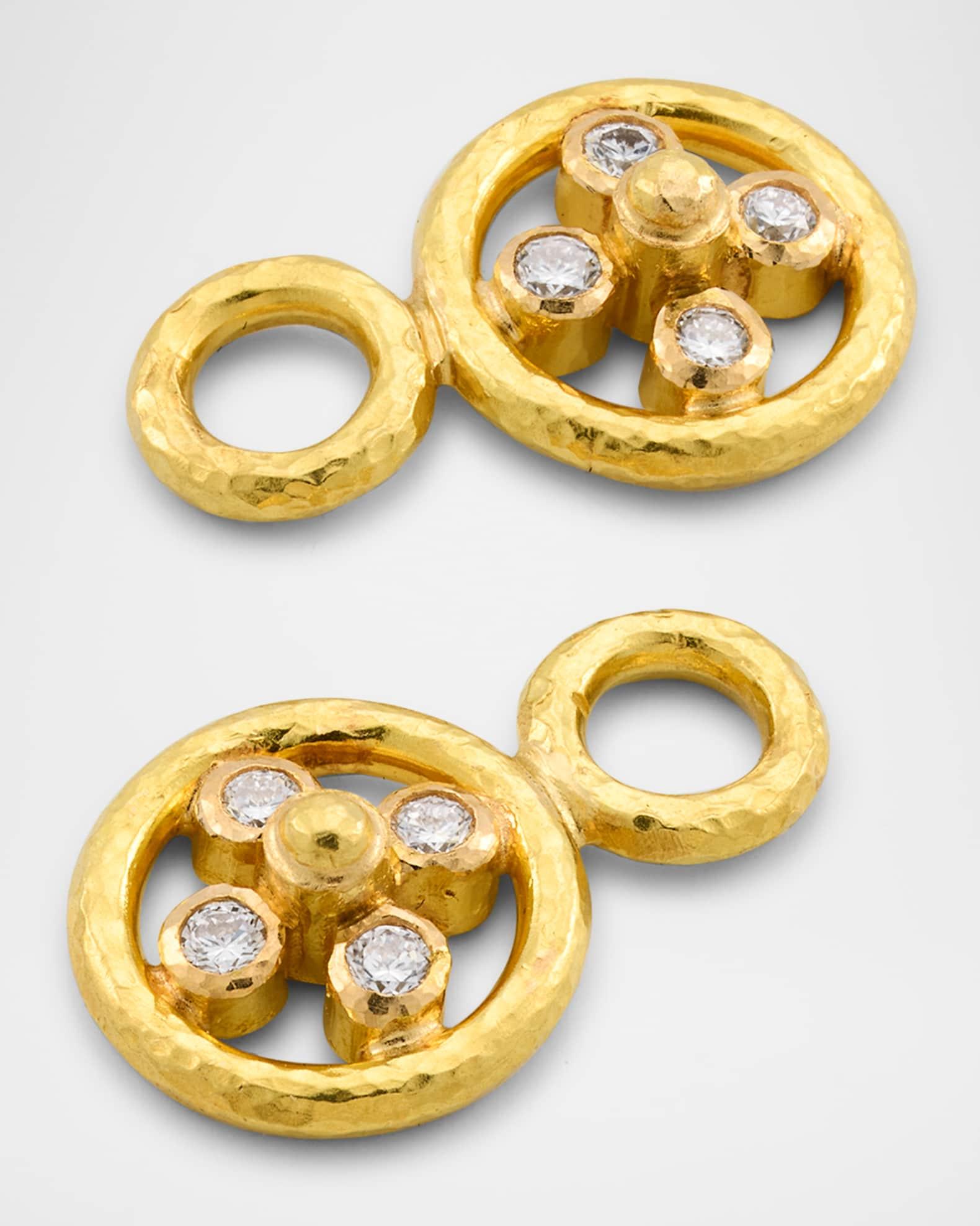 Round colorless diamonds are arranged with tube bezels for these Elizabeth Locke earring charms. Wear these pendants on hoop earrings or the brand's signature "Sarabella" earrings. Approx. 19mm x 12mm Signature 19-karat yellow gold Eight 2mm diamonds; 0.26 total carat weight Charms only; earrings not included Imported Style # ERP116481