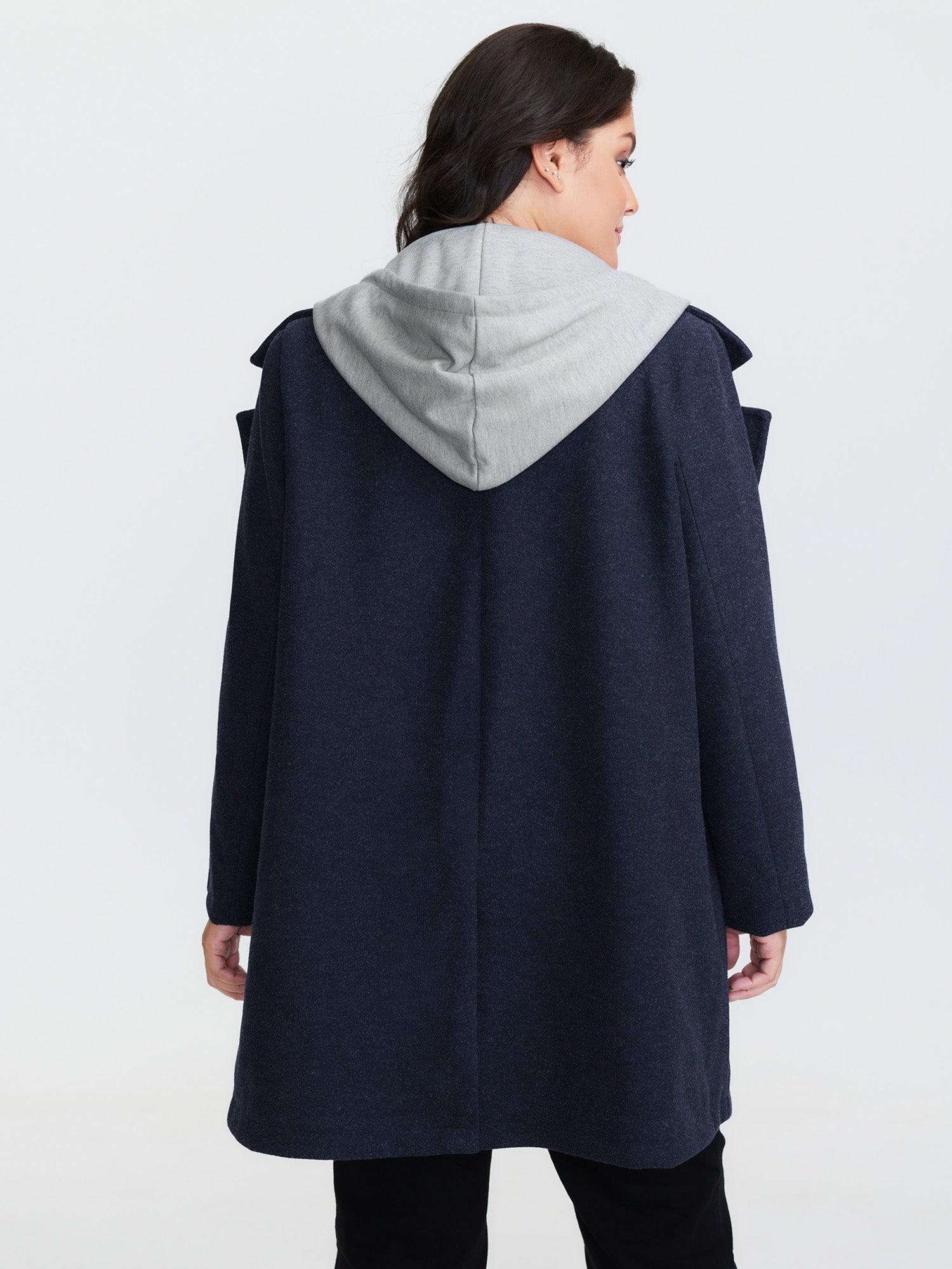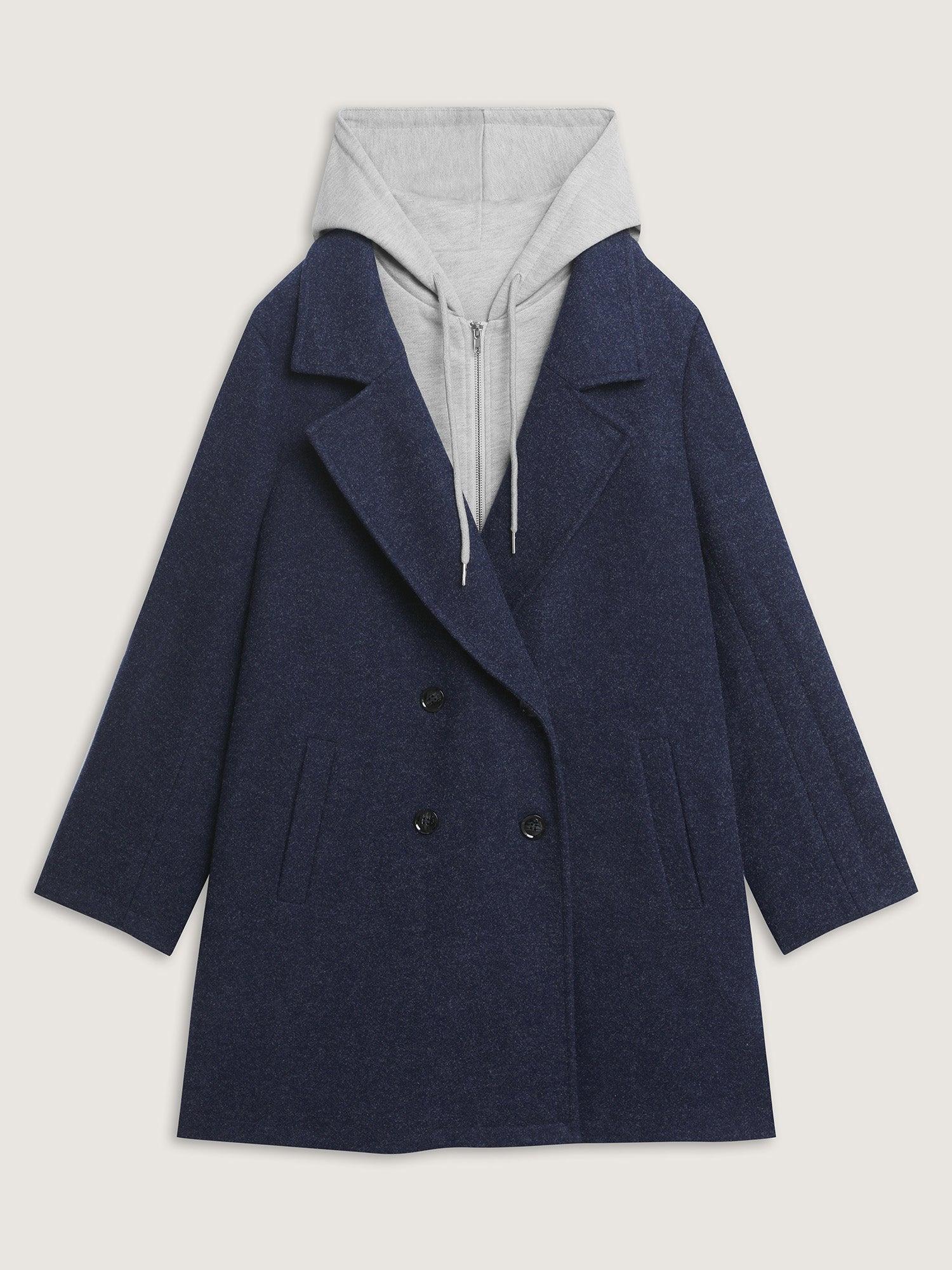 Shop 2 In 1 Double Breasted Hooded Coat now and redefine your style with confidence at BloomChic. Tailored for mid and plus-size women. This trendy Outerwear Women, sizes 10-30. Color:Midnight;Style:Leisure;Prints:Non;Details:Button, Contrast;Pocket:Single-flap pocket;Belt:No-belt;Closure Type:Open front with closure;Lining:Lining