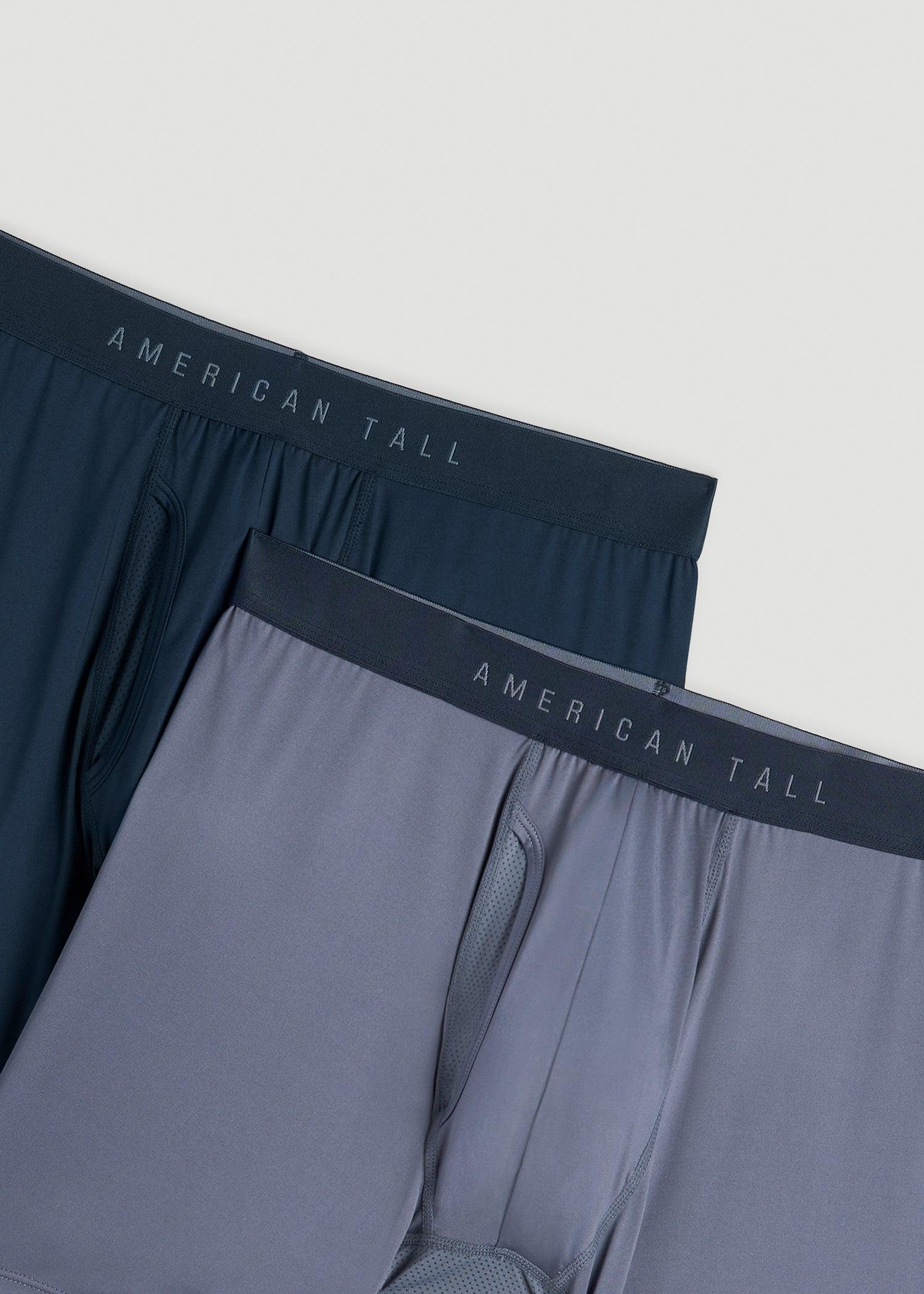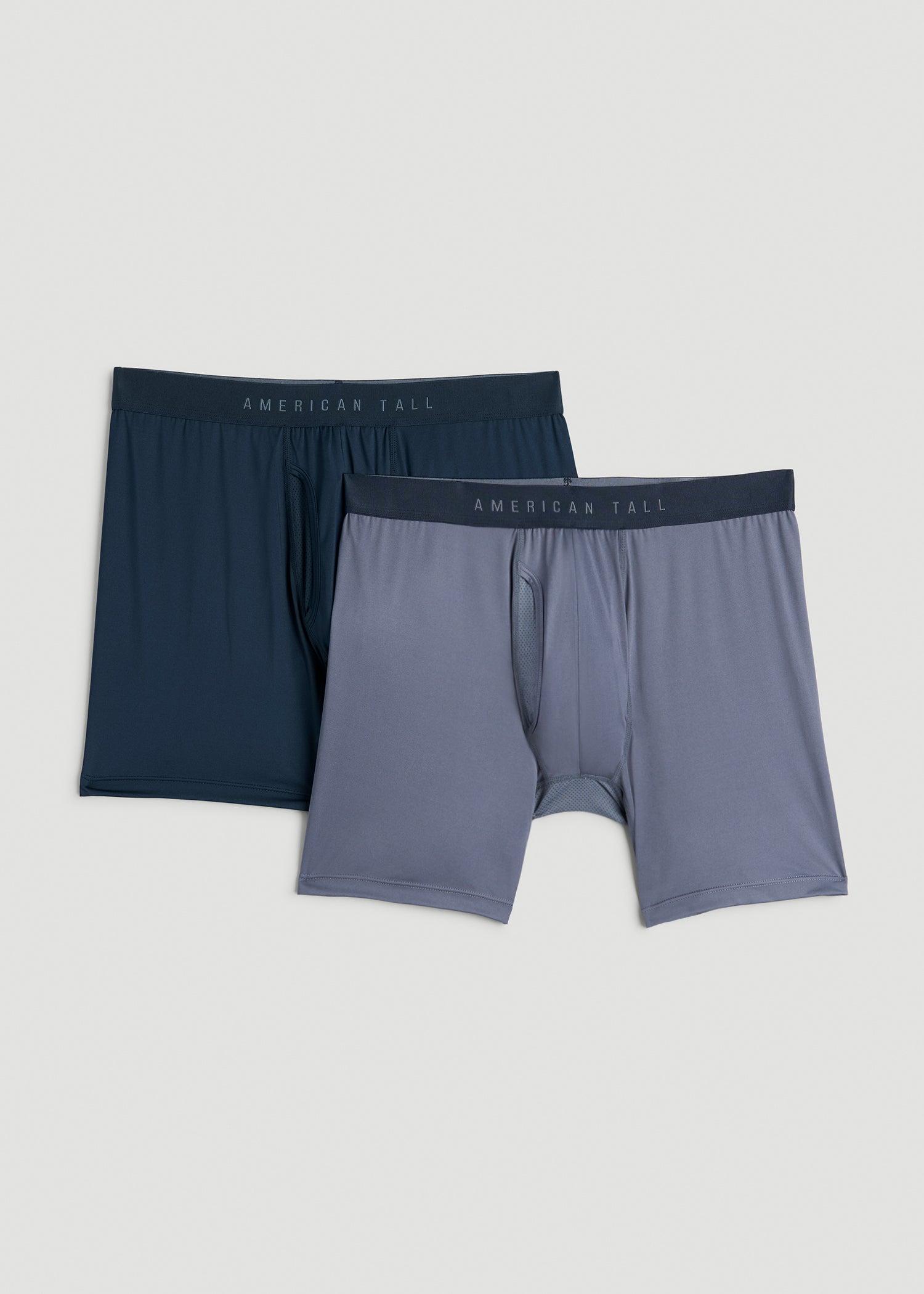 Meet the 2‑Pack Performance Extra-Long Boxer Briefs for Tall Men—quick‑dry, odor‑repellent stretch heroes built for busy days. A mid‑rise cut plus a 6‑inch inseam means this tall men’s underwear stays put from commute to cooldown.• Moisture‑wicking knit keeps you cool• Odor-resistant• Pre‑washed so the fit stays true