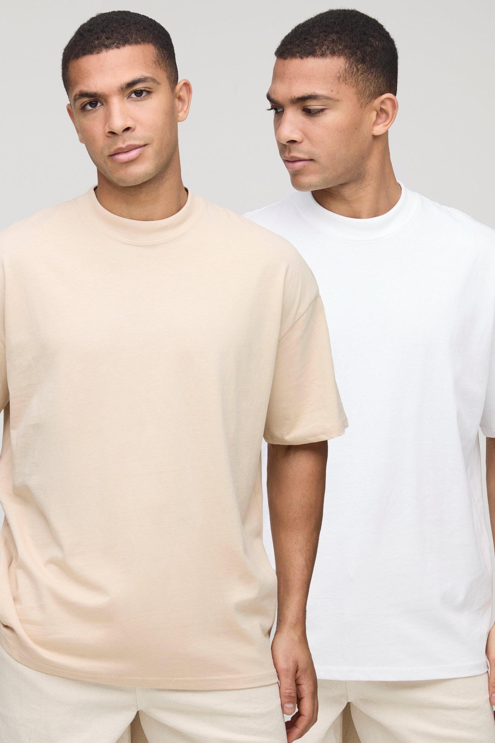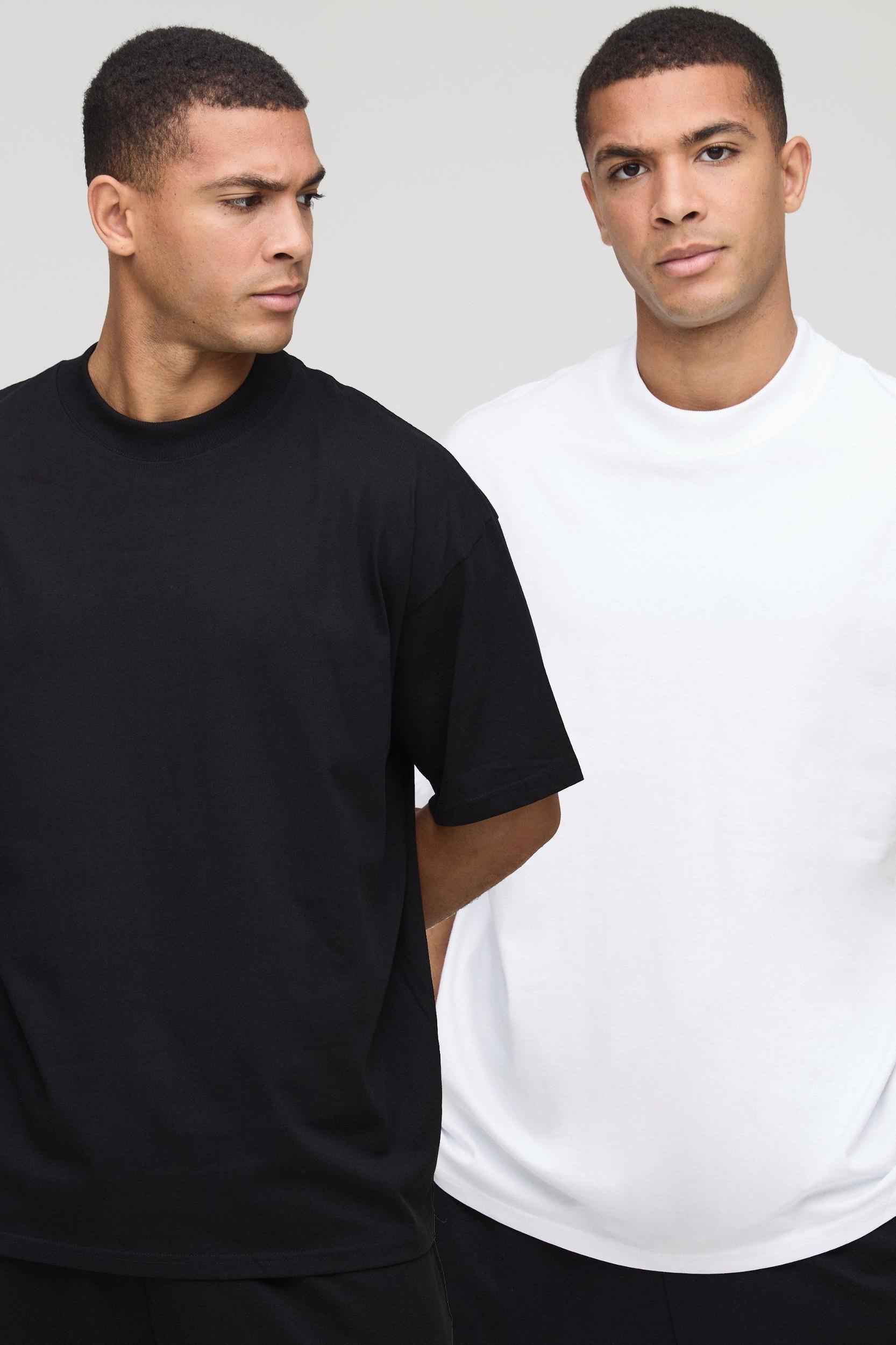 2 Pack Basic Oversized Heavyweight Extended Neck T-Shirts | boohooMAN USA