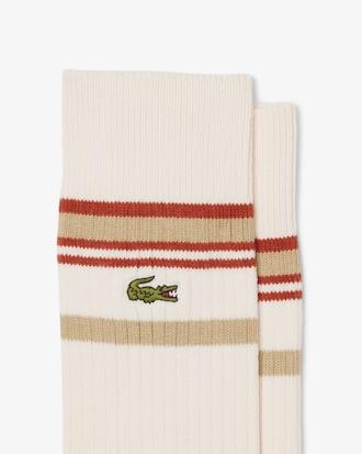 Two pairs of soft, comfortable cotton socks from Lacoste, sportswear creators since 1933. Perfect for everyday wear or for sports sessions, with a contrasting striped design. The intricate green embroidered crocodile adds an extra touch of reptile style.