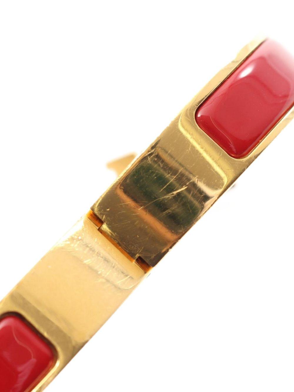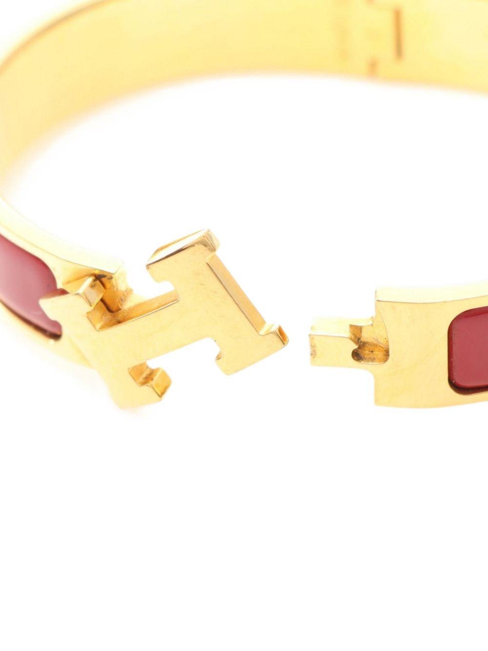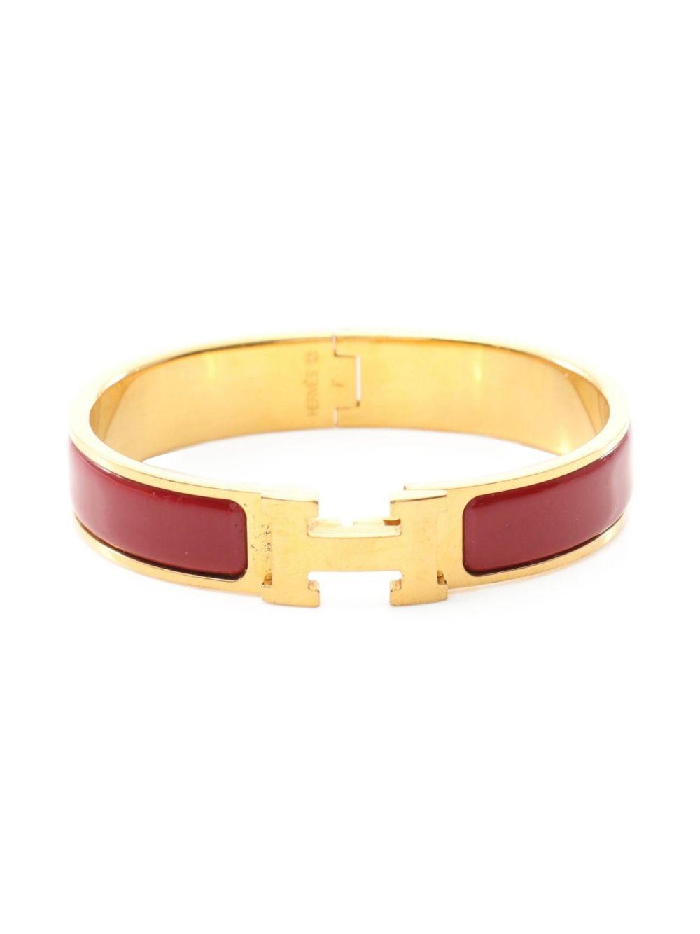 Hermès Pre-Owned 2000s Clic Clac H bracelet | Gold | circa 2000s | gold-tone/burgundy | gold plated metal | enamel detail | clasp fastening | Normal everyday use and external agents may reduce the lustre of gemstones and gold surfaces. To maintain, use specific, non-abrasive products specially meant for cleaning jewellery. | Condition: GOOD. This previously owned and used item is in good condition with minimal signs of use. This may include fading of material or plating and scratches. | Enamel/Gold Plated | Pre-Owned Jewelry | Pre-Owned | Women