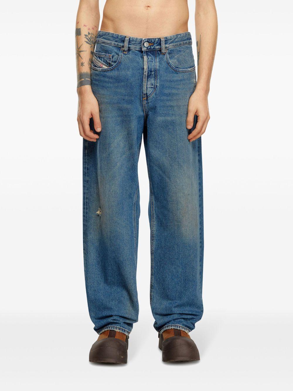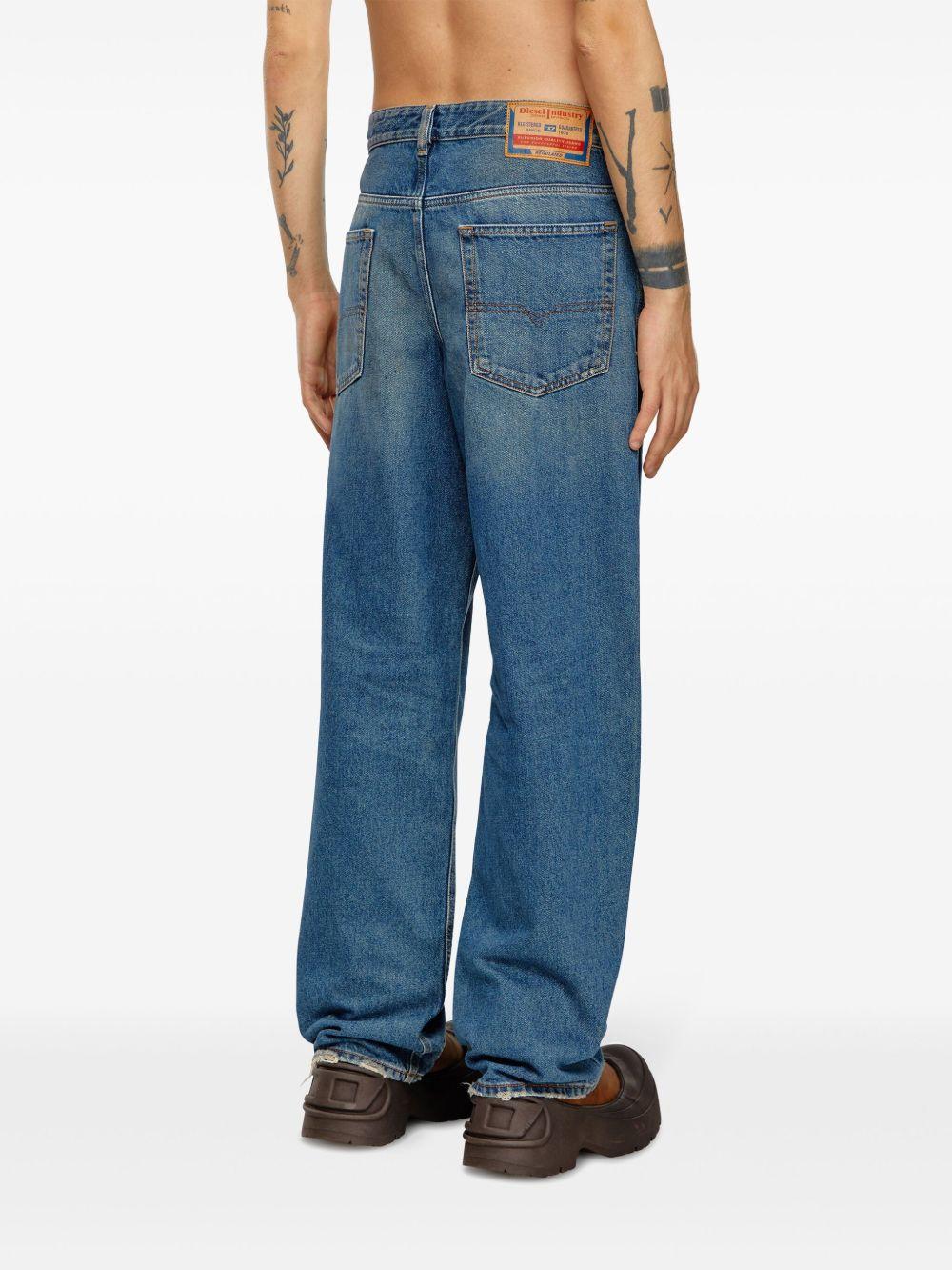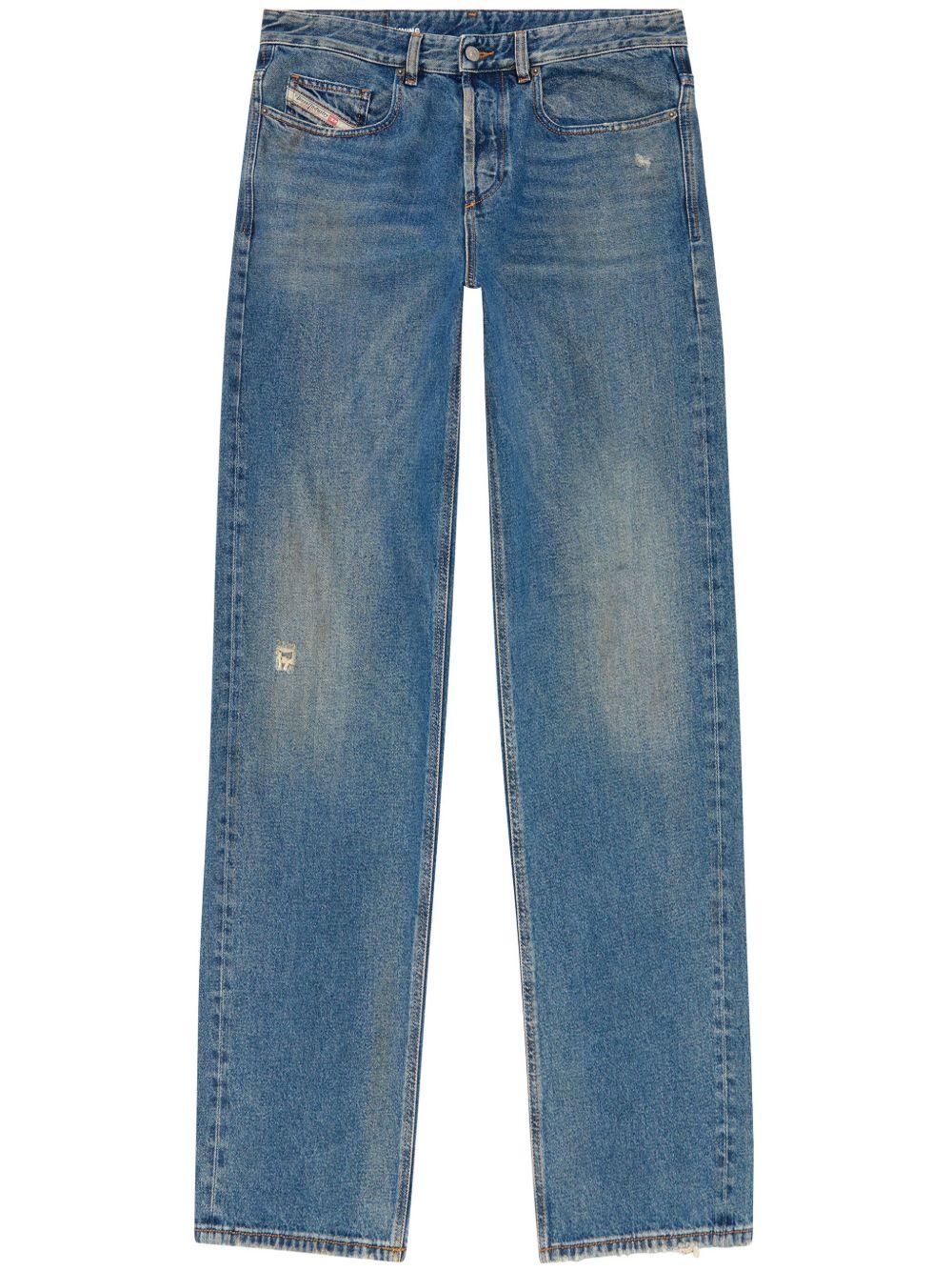 Diesel 2001 D-Macro straight-leg jeans | Blue | blue | cotton | denim | whiskering effect at the thighs | logo patch to the rear | mid-rise | drop crotch | belt loops | concealed fly and button fastening | straight leg | Organic Cotton | Regular & Straight-Leg Jeans | Denim | Clothing | Men