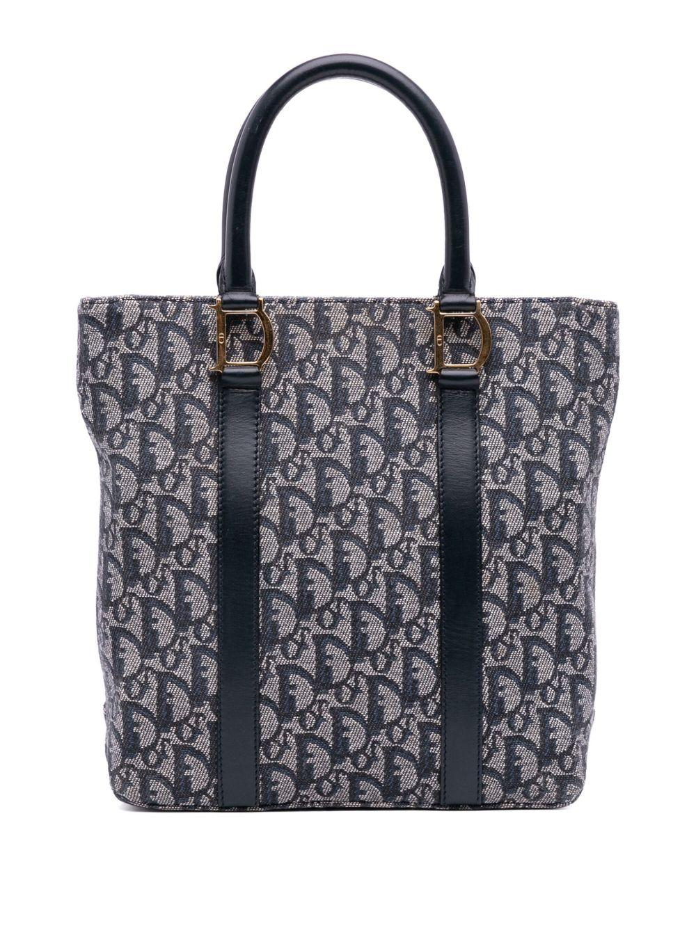 Christian Dior Pre-Owned 2001 Diorissimo Trotter Canvas tote bag | Blue | canvas body with leather trim | rolled leather handles | open top with magnetic snap closure | interior zip pocket | blue | Serial Number: BO B 0071 | This item has no inclusions. | Condition: GOOD. This previously owned and used item is in good condition with minimal signs of use. This may include fading of material or plating and scratches. | Declared Damages: Handle/Strap Feature(s) Minor Splitting. | Please refer to the photos on this product page for a detailed view of the item, including any damages declared. | Calf Leather/Canvas | Pre-Owned Bags | Pre-Owned | Tote Bags | Bags | Men | Pre-Owned Bags | Pre-Owned | Tote Bags | Bags | Women