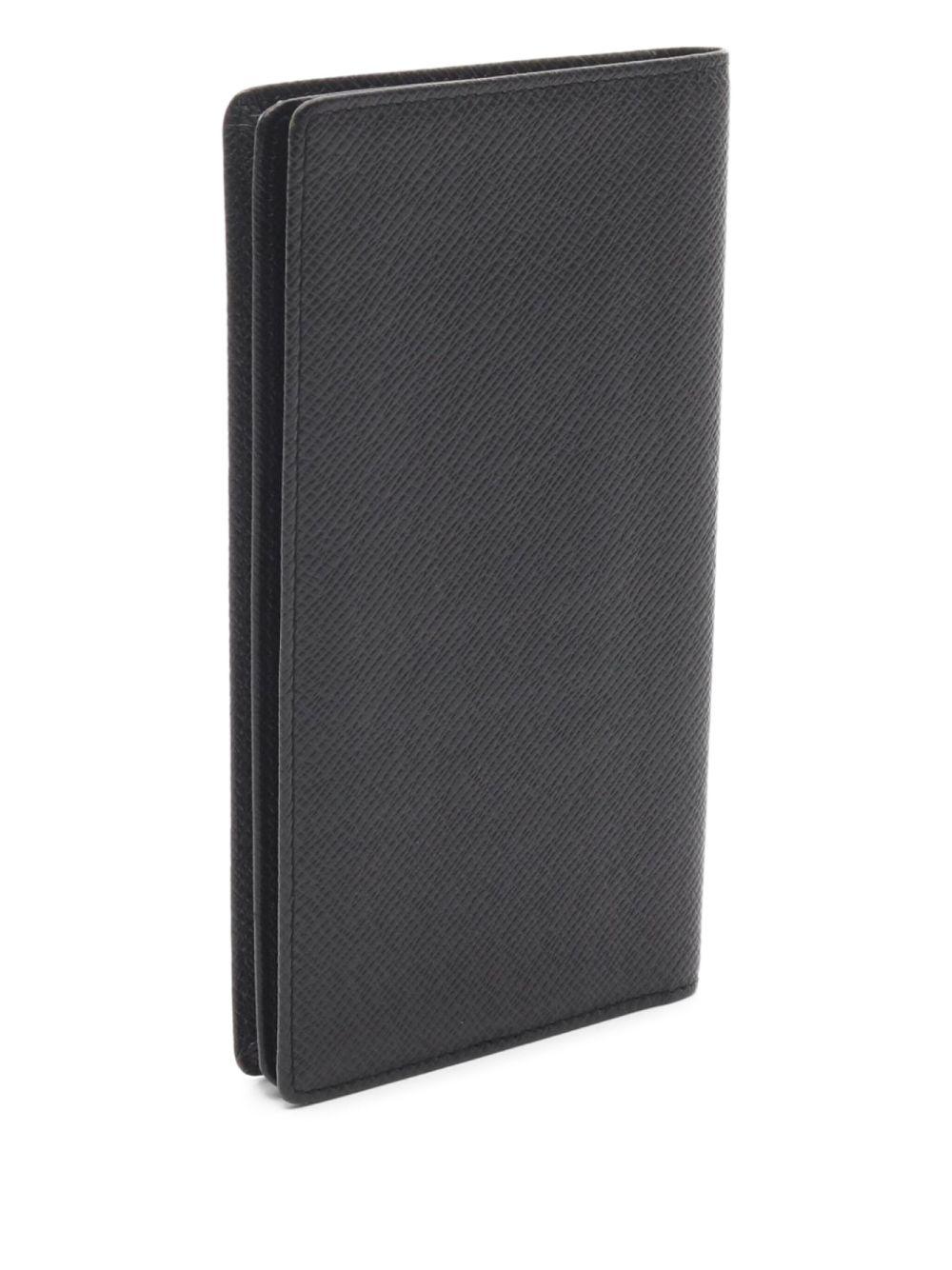 Louis Vuitton Pre-Owned 2005 Portefeuil leather wallet | Black | 2005 | black | taiga leather | bi-fold design | card slots | Condition: GOOD. This previously owned and used item is in good condition with minimal signs of use. This may include fading of material or plating and scratches. | Calf Leather | Pre-Owned Accessories | Pre-Owned | Men
