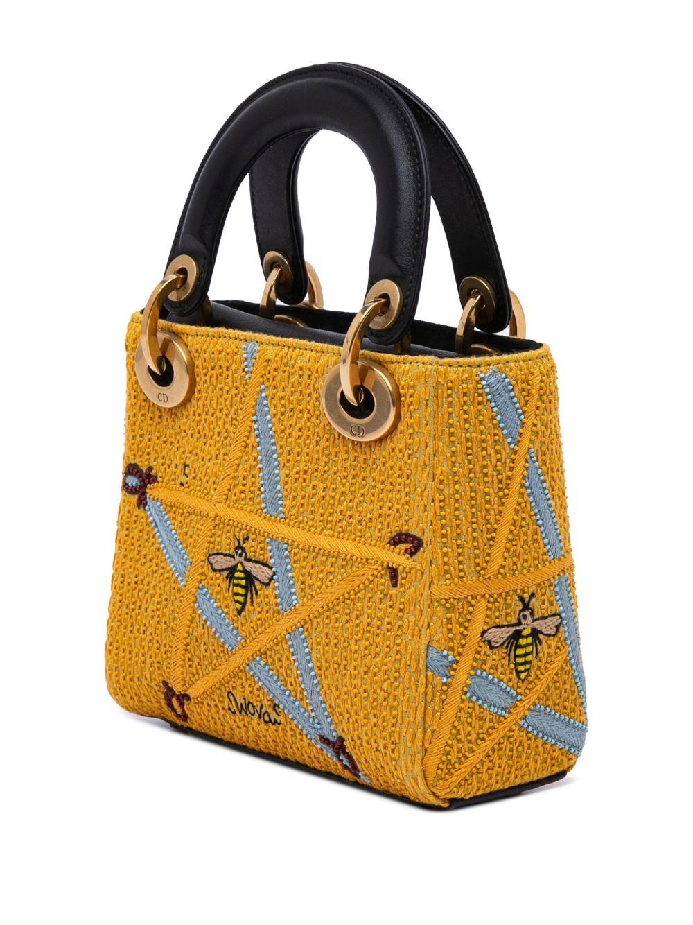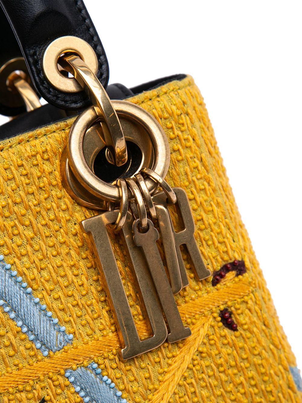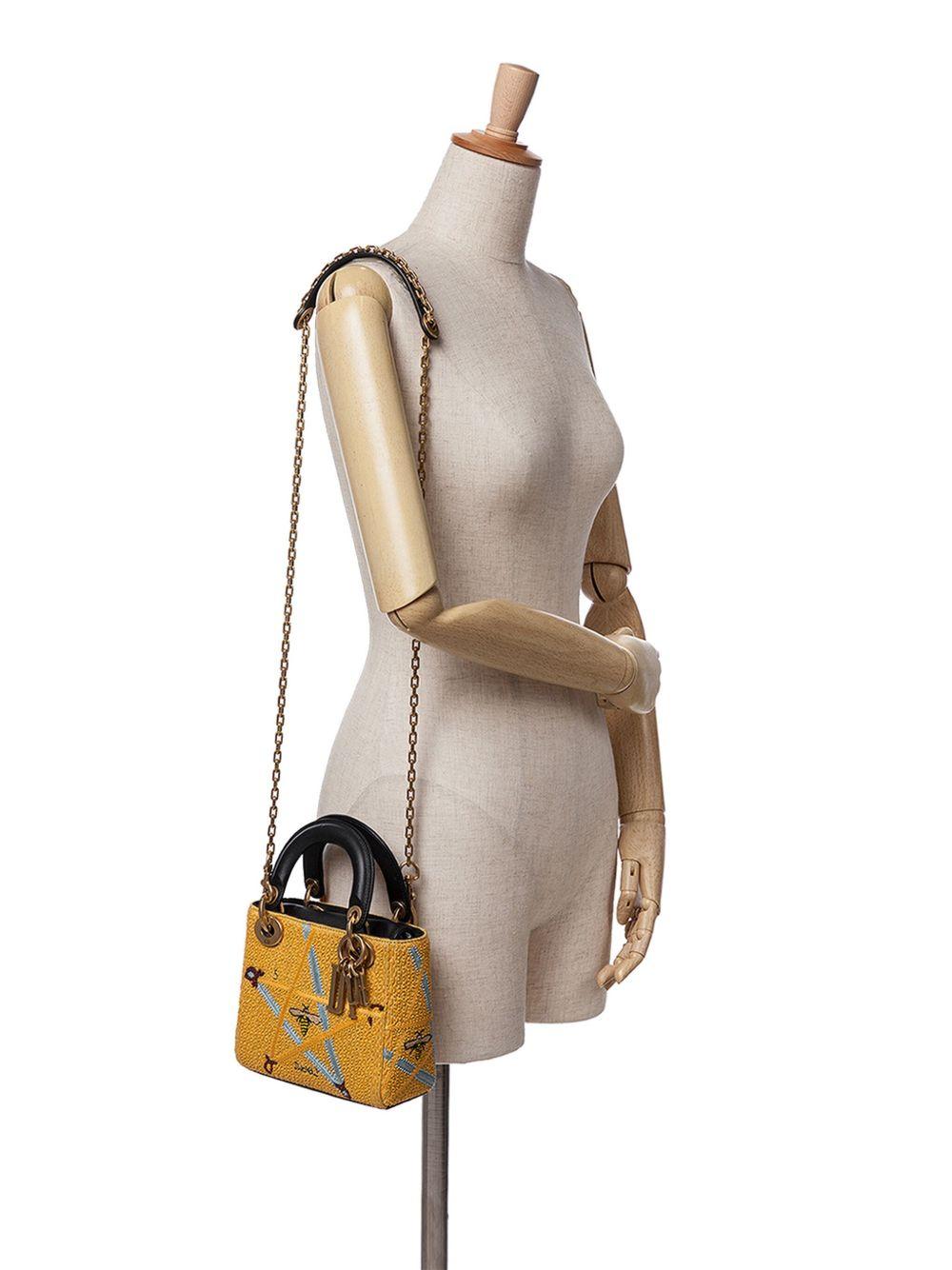 Christian Dior Pre-Owned 2017 Mini Embroidered Canvas Swords Lady Dior satchel | Yellow | embroidered canvas body | flat leather top handles | detachable flat shoulder strap | top flap closure | interior zip pocket | yellow | Serial Number: 11-MA-1107 | Inclusions: shoulder strap. | Condition: GOOD. This previously owned and used item is in good condition with minimal signs of use. This may include fading of material or plating and scratches. | Please refer to the photos on this product page for a detailed view of the item, including any damages declared. | Canvas | Pre-Owned Bags | Pre-Owned | Messenger & Crossbody Bags | Bags | Women