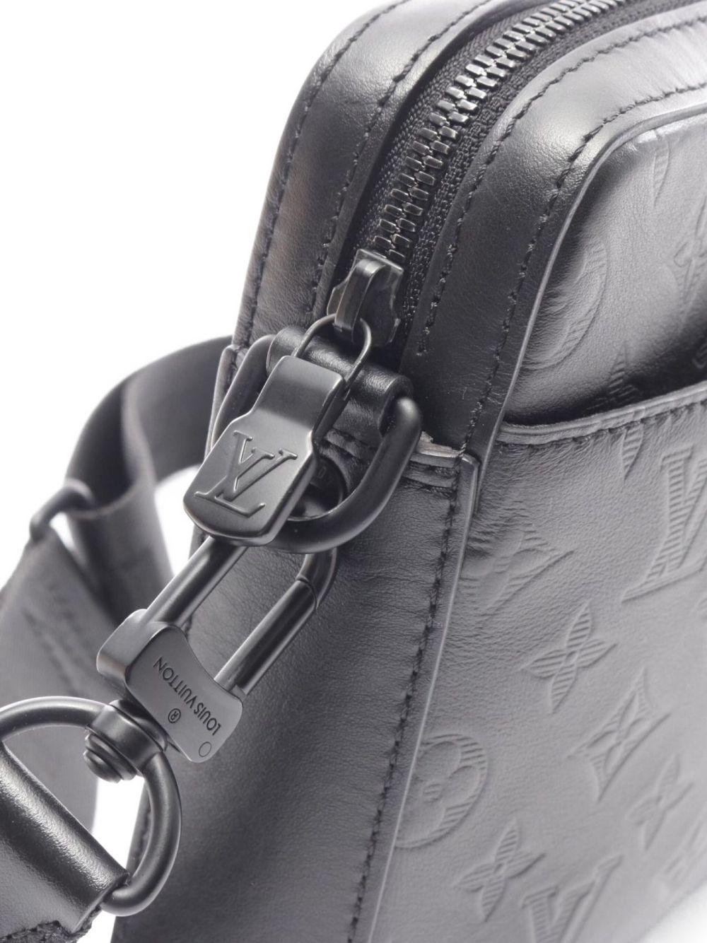 Louis Vuitton Pre-Owned 2021 Duo leather messenger bag | Black | circa 2021 | black | Empreinte leather | adjustable strap | zip closure | Condition: EXCELLENT. This previously owned item is in near-perfect condition with no signs of damage or use. | Calf Leather | Pre-Owned Bags | Pre-Owned | Messenger Bags | Bags | Men