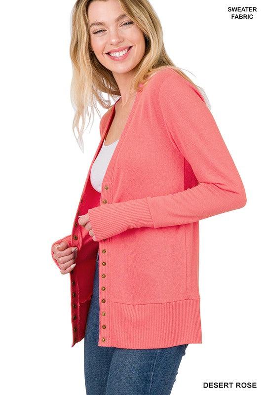 PLUS SNAP BUTTON V-NECK SWEATER CARDIGAN WITH RIBBED DETAIL NECKLINE