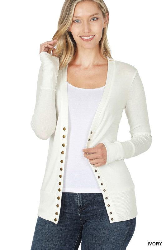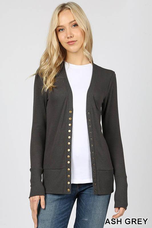 This is one of our most popular styles in the store! Coming in an array of colors, these cute snap cardigans are just the light layer you need to cover your arms!