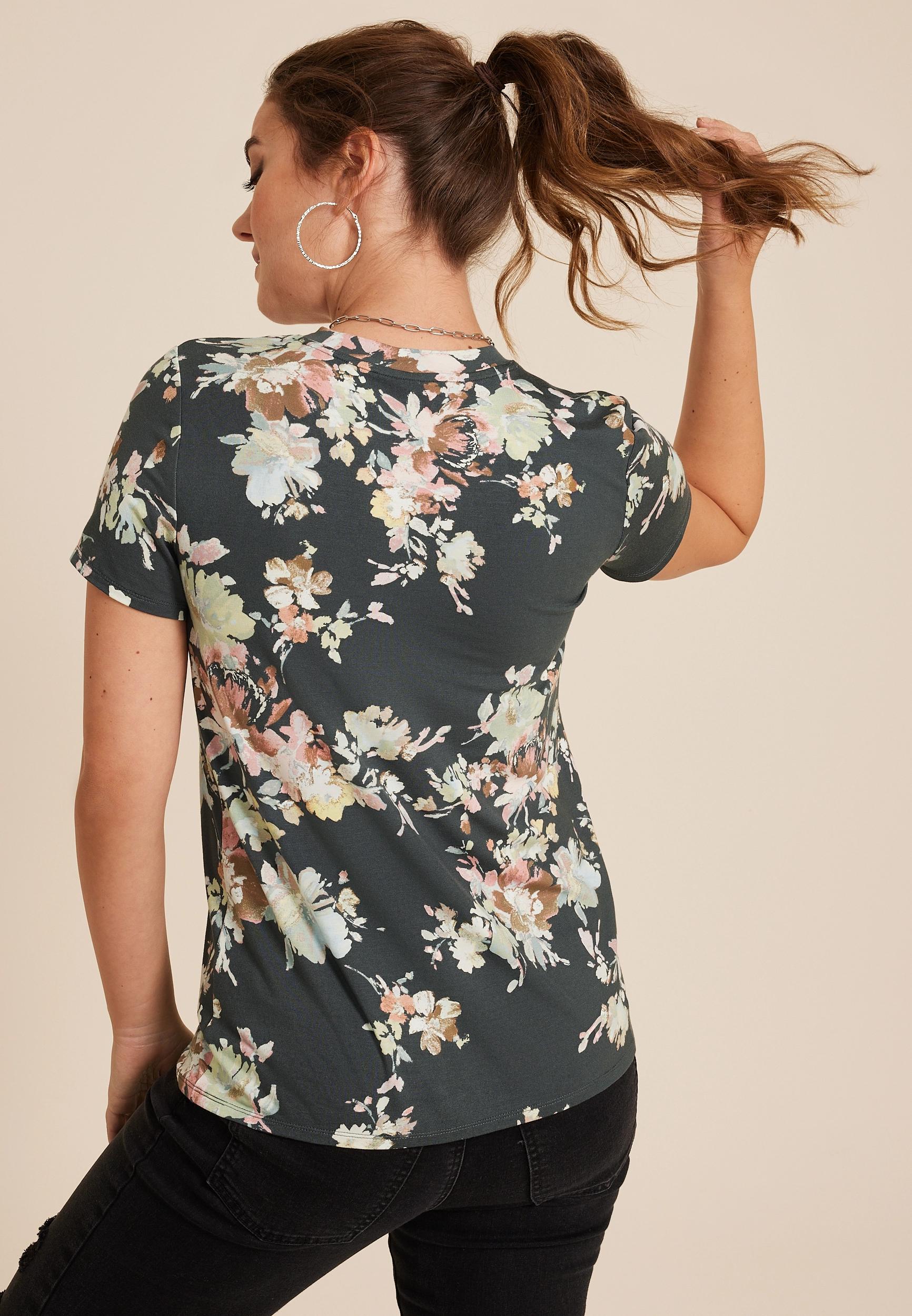 24/7 Flawless fabric is soft, feminine and easy to dress up, but still feels right at home with jeans. .mar-pdp-section .mar-product-description {color: #000;}.mar-pdp-section .mar-product-description ul, .mar-pdp-section .mar-product-description ul>li {margin-left: 10px;padding-left: 10px;}.mar-pdp-section .mar-product-description .mar-product-description-content ul li{list-style-type: disc;margin: 0 0 5px;padding-left: 5px;}.mar-pdp-section .mar-product-description p {color: #000;padding: 5px 0;}@media only screen and (max-width: 1023px){.mar-pdp-section .mar-product-description .mar-product-description-content ul li{list-style-type: disc !important;} .mar-pdp-section .mar-product-description .mar-product-description-content .mar-tab-content ul{padding-left: 10px;}.mar-pdp-section .mar-product-description .mar-product-description-content .mar-tab-content {font-weight: 300;}} Features: soft fabric floral print short sleeves crew neckline straight hem