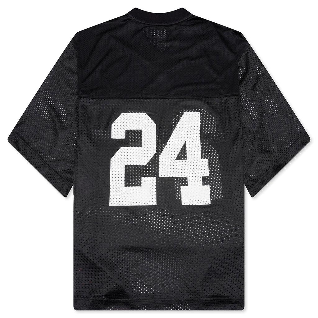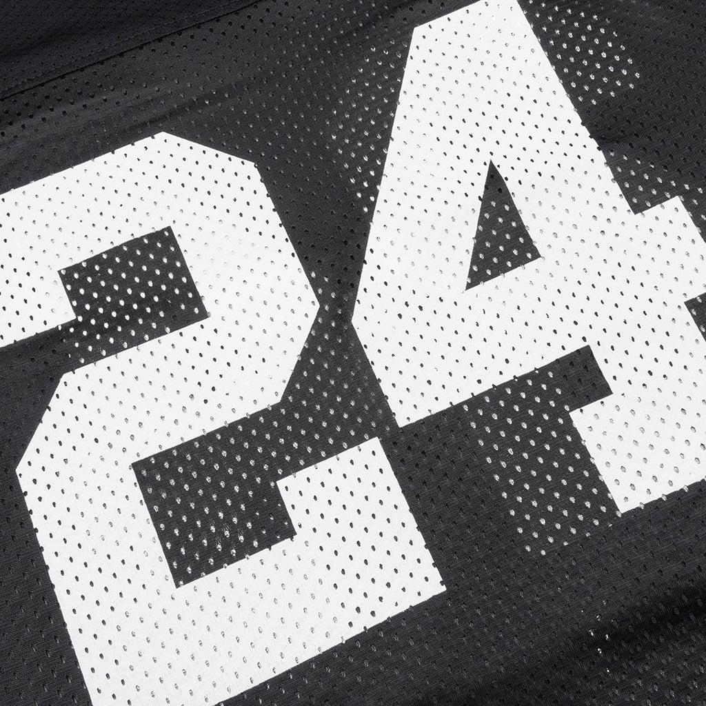 The 24 Mesh Boxy Jersey from Nahmias makes an impression with its airy open mesh construction. Cut from polyester, this garment features a jersey-style screen-printed '24' at the front and a v-neckline. The boxy fit gives a comfortable wear, while the custom woven label tag adds dimension and completes the look. 100% Polyester V-neckline Open mesh Screen-printed '24' Custom woven label Style No: W79-T26G37-001