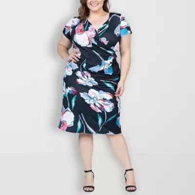 24seven Comfort Apparel Womens Short Sleeve Geometric Wrap Dress Plus