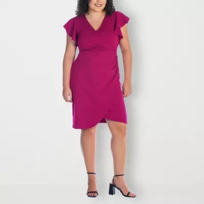 24seven Comfort Apparel Womens Plus Short Sleeve Wrap Dress