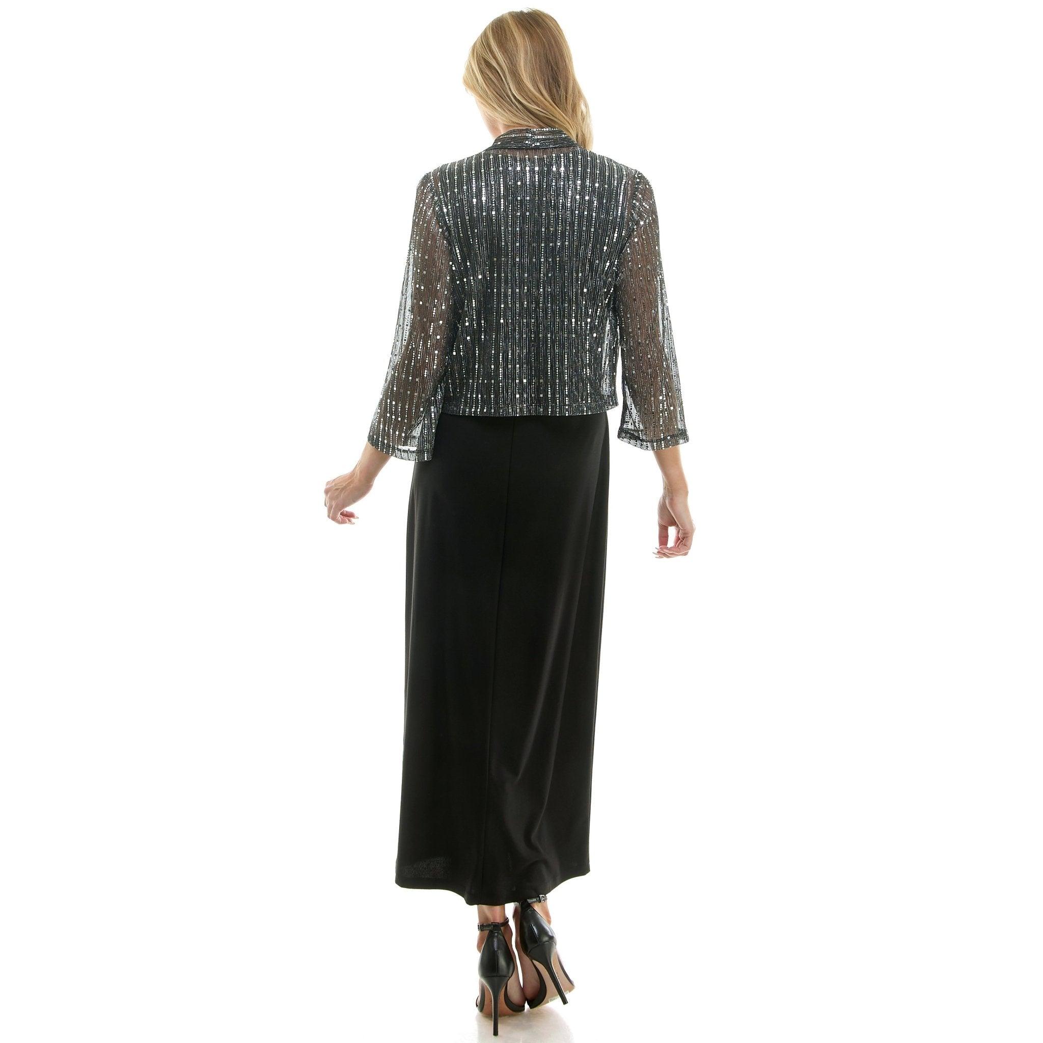 2Fer Jacket Tank Dress w/ Detachable Necklace, Silver/Black