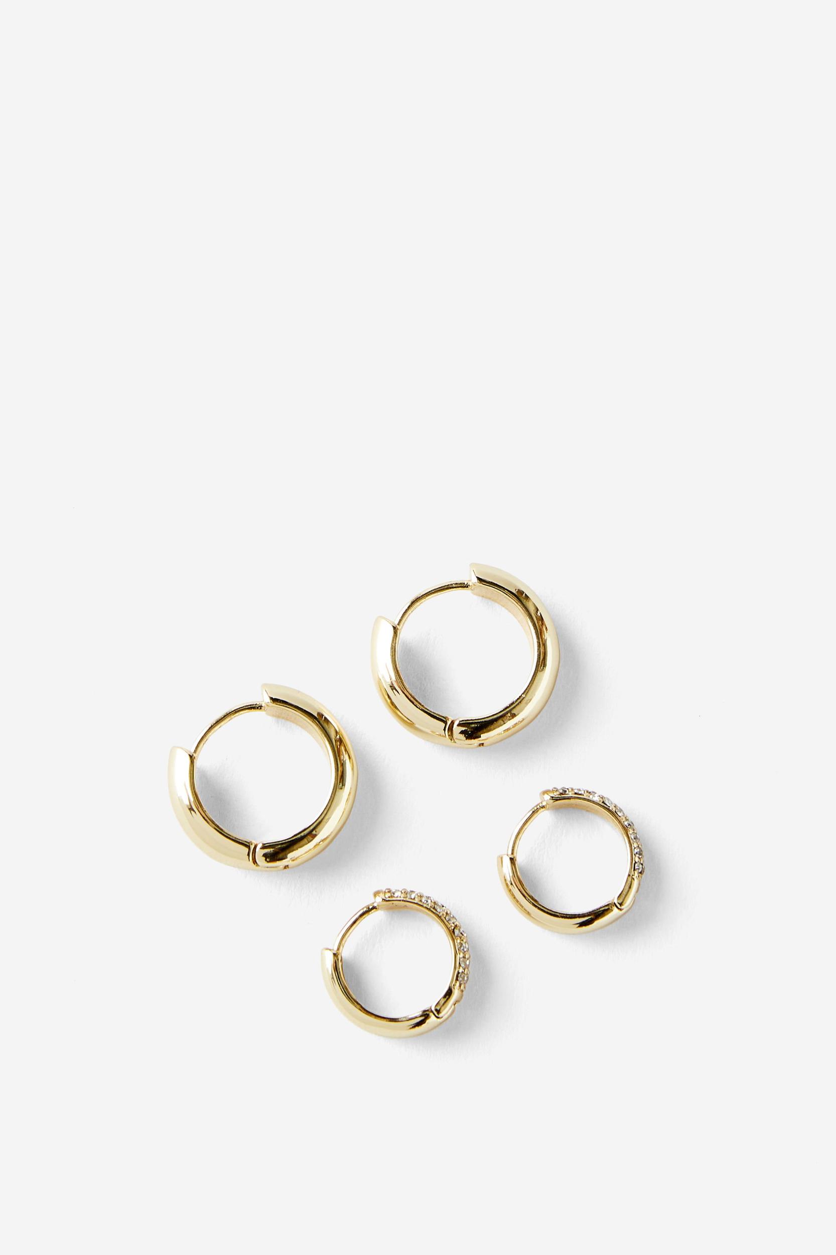 Real Gold or Silver Plated ,2PK Earrings ,Hoop Style ,Diamante Details DIMENSIONS: ,Plain hoop:17mm ,2.13mm hoop with 1mm glass stone Main: 100% Metal.
