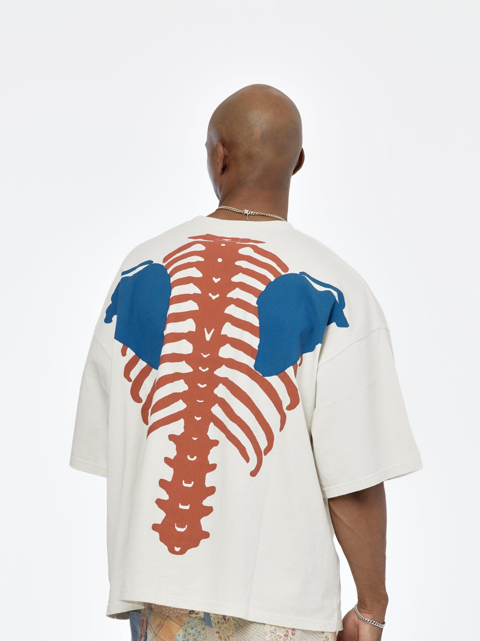 KAPITAL’s T-shirt features a minimalist plain front that contrasts with a striking skeleton print across the back, rendered in a contrasting army-green shade. Crafted from soft cotton-jersey, this shirt is cut extra baggy and distressed to achieve a vintage, worn-in look. Perfect for those who appreciate a blend of understated front design and bold, edgy details on the back.