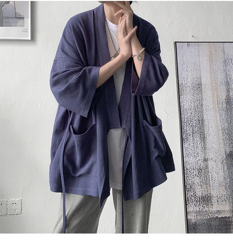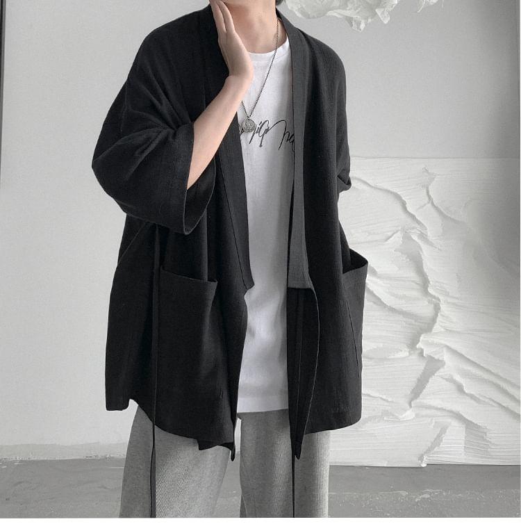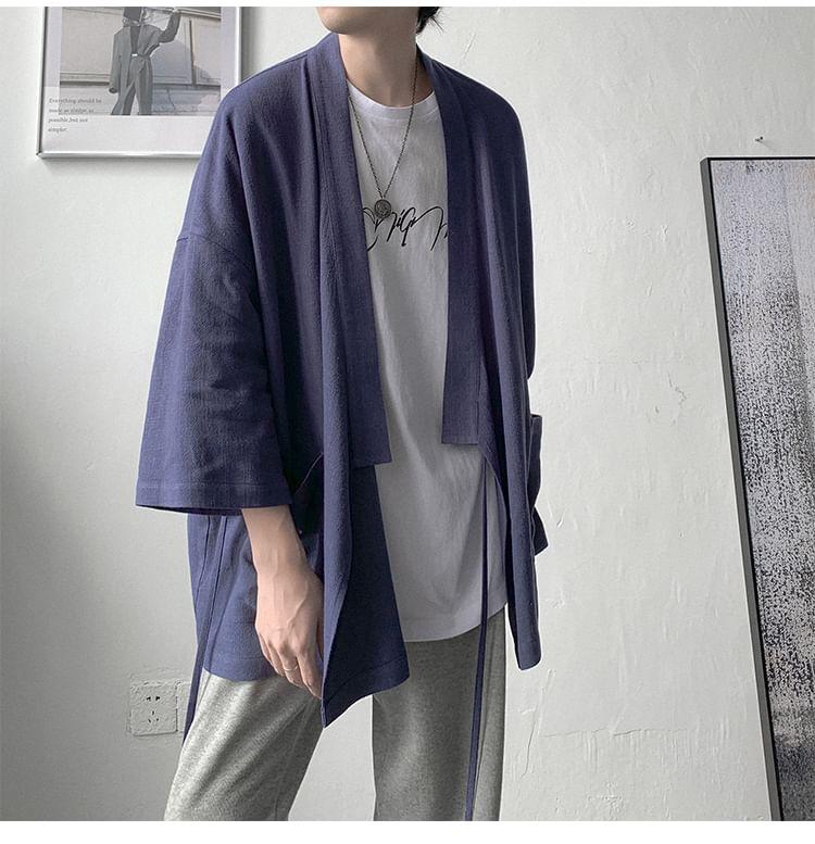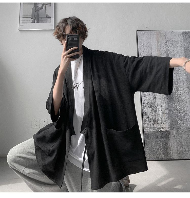 3/4-Sleeve Plain Open Front Kimono Jacket