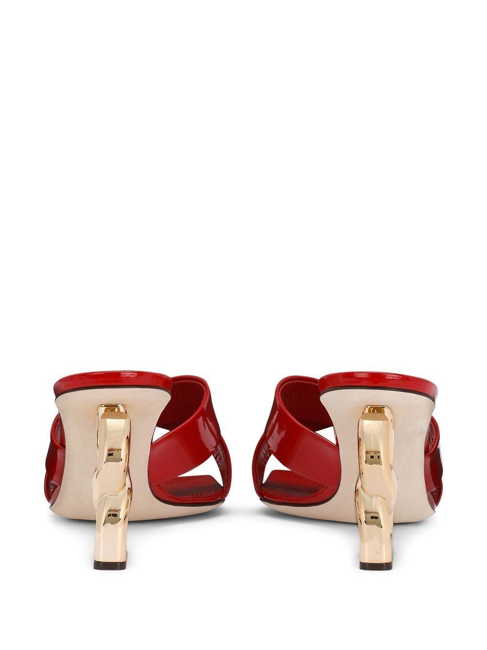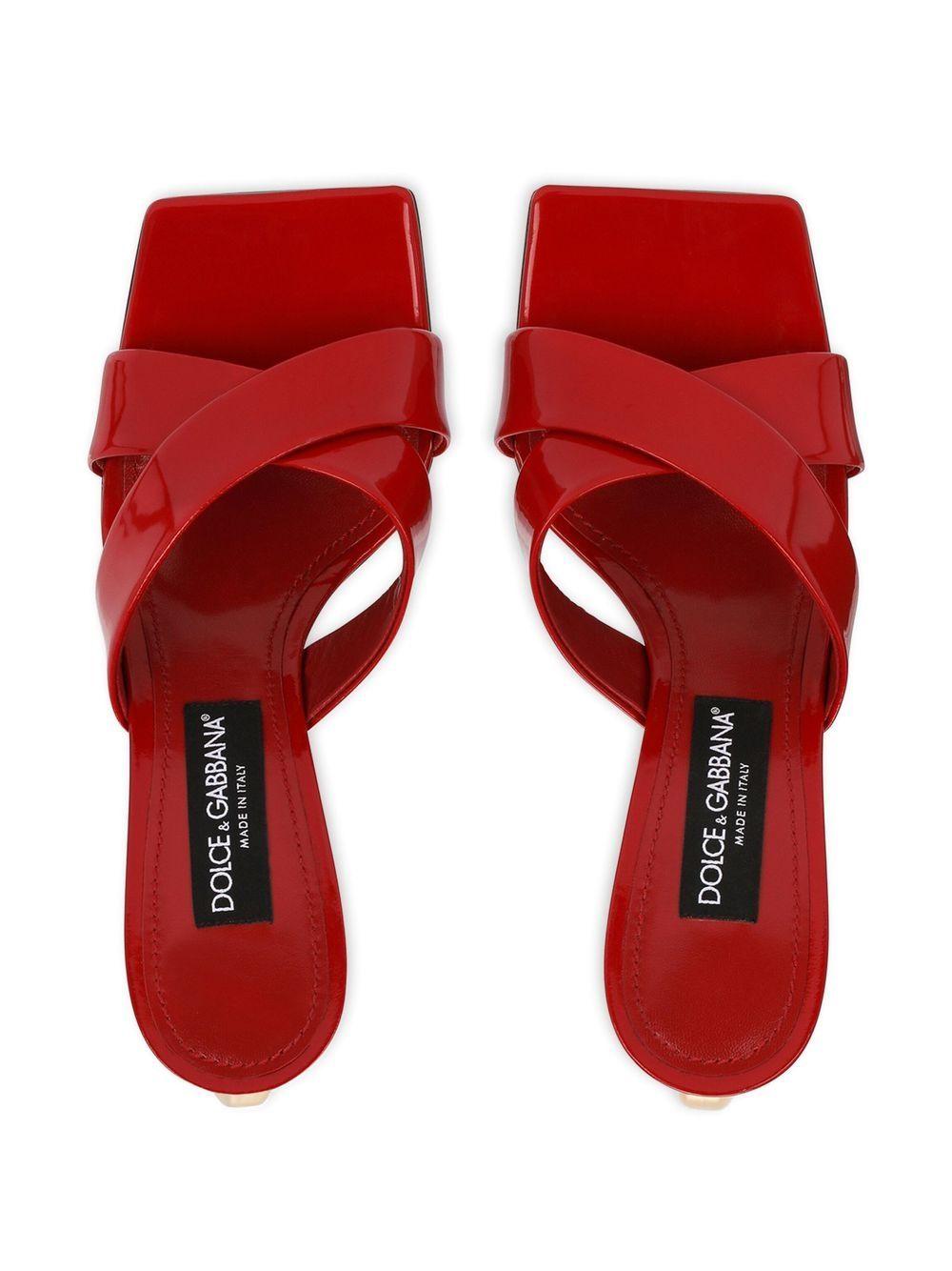 Dolce & Gabbana 3.5 75mm patent leather mules | Red | red | calf leather | square toe | crossover strap at the toe | branded insole | 75mm logo heel | Calf Leather/Goat Skin/Calf Leather/Leather | Heeled Sandals | Sandals | Heeled Mules | Mules | Shoes | Women