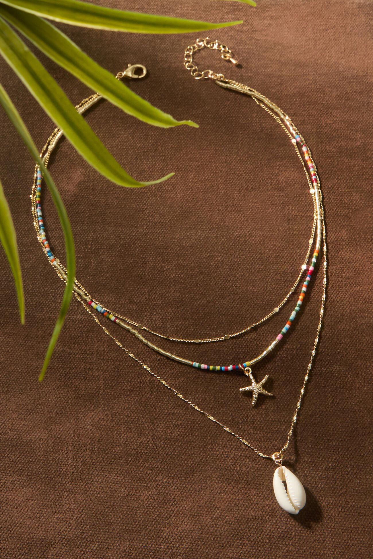 Bring a splash of coastal charm to your look with this stunning 3 layer necklace. Featuring delicate shell and starfish charms, each layer adds a touch of beachy elegance. Whether you’re channeling summer vibes or seeking a fun statement accessory, this necklace is your perfect partner for both relaxed days and nights out.