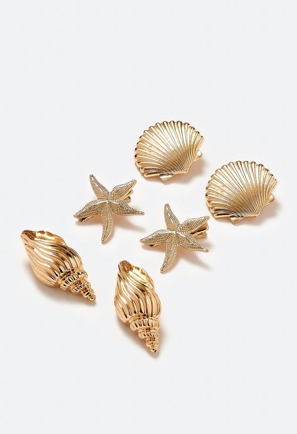 3-Pack Dori Shell And Starfish Metal Hair Slides