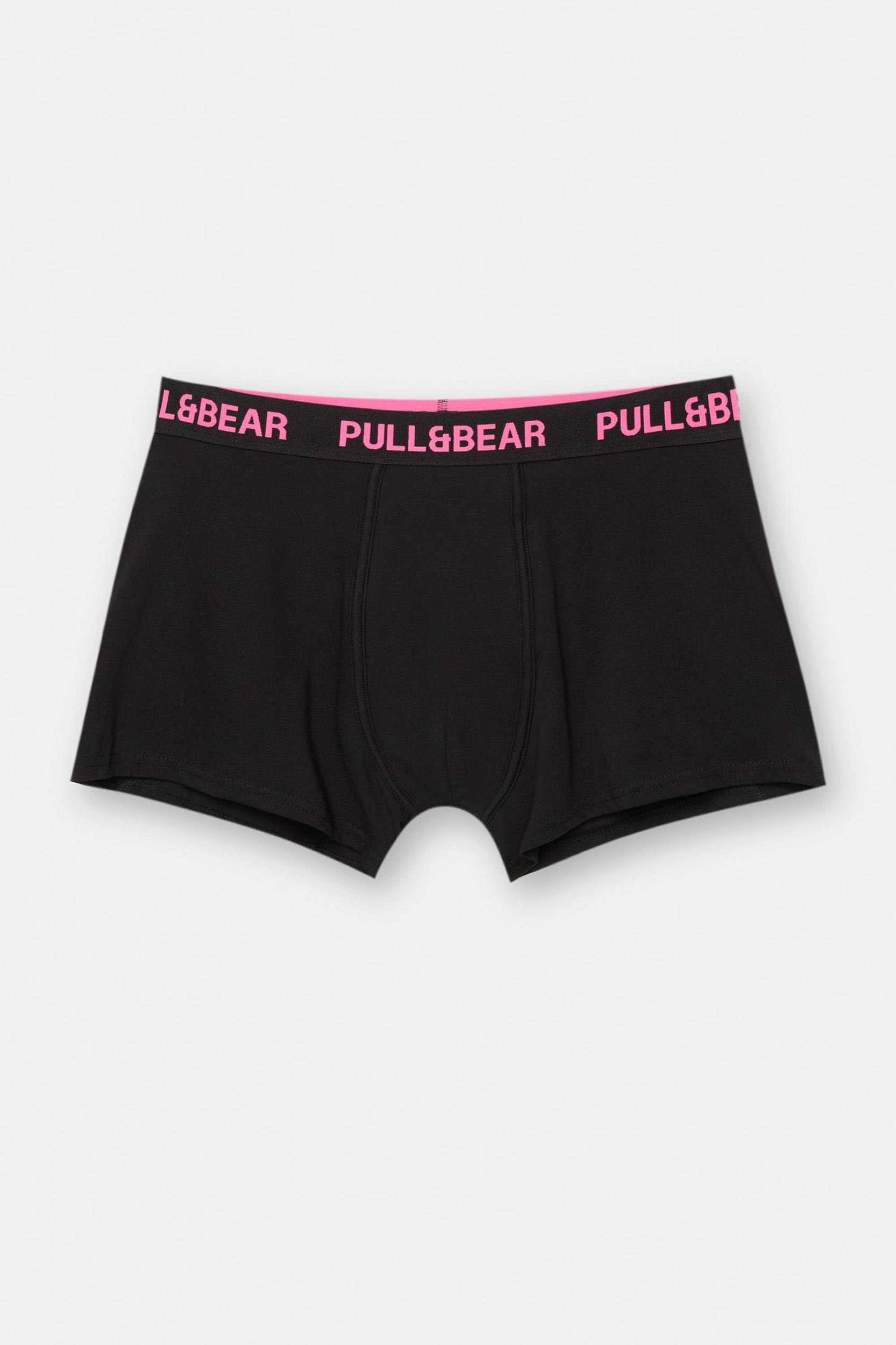 Pack of 3 black boxers with an elastic waistband in neon colors and a contrast Pull&Bear logo.