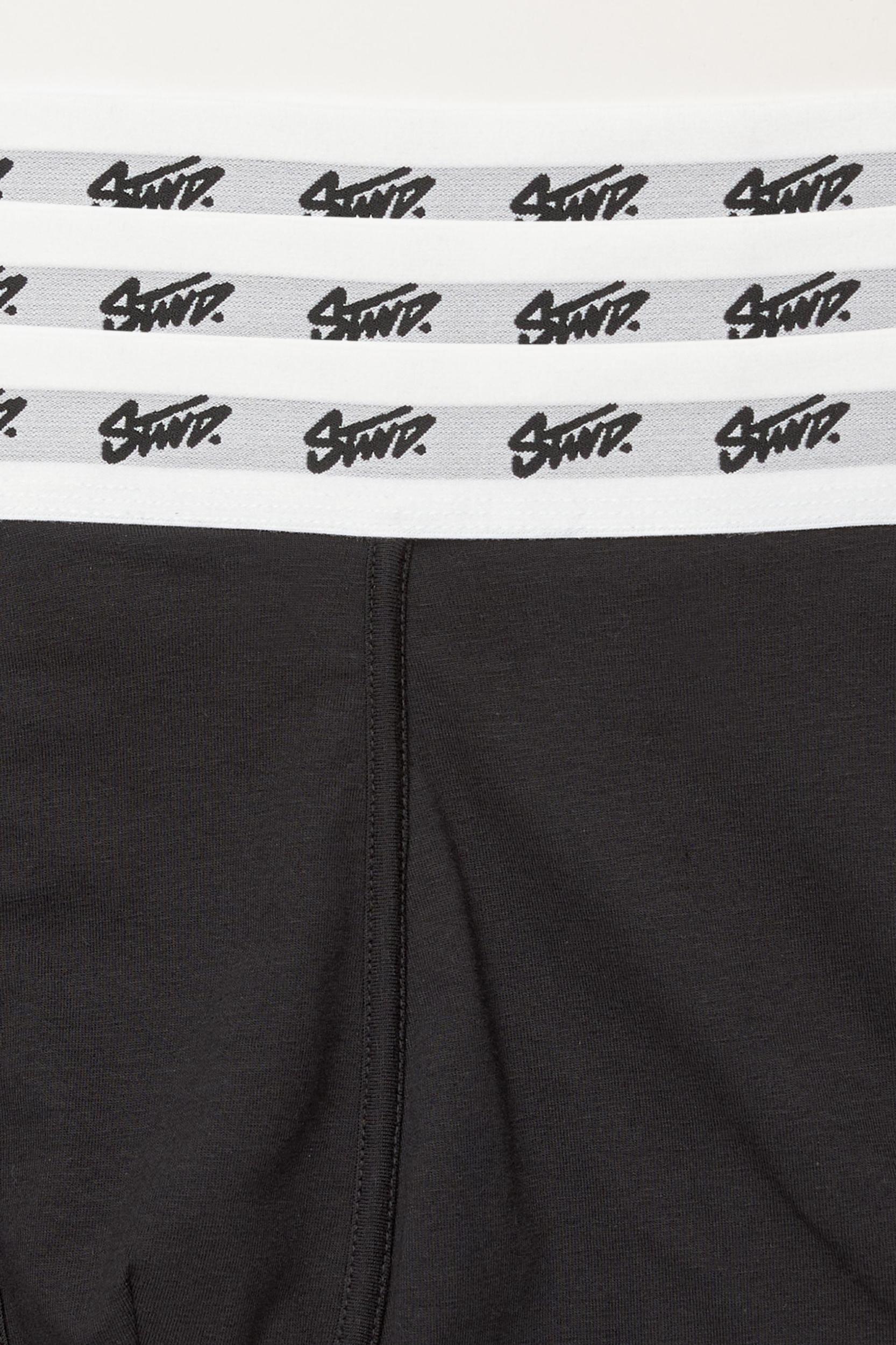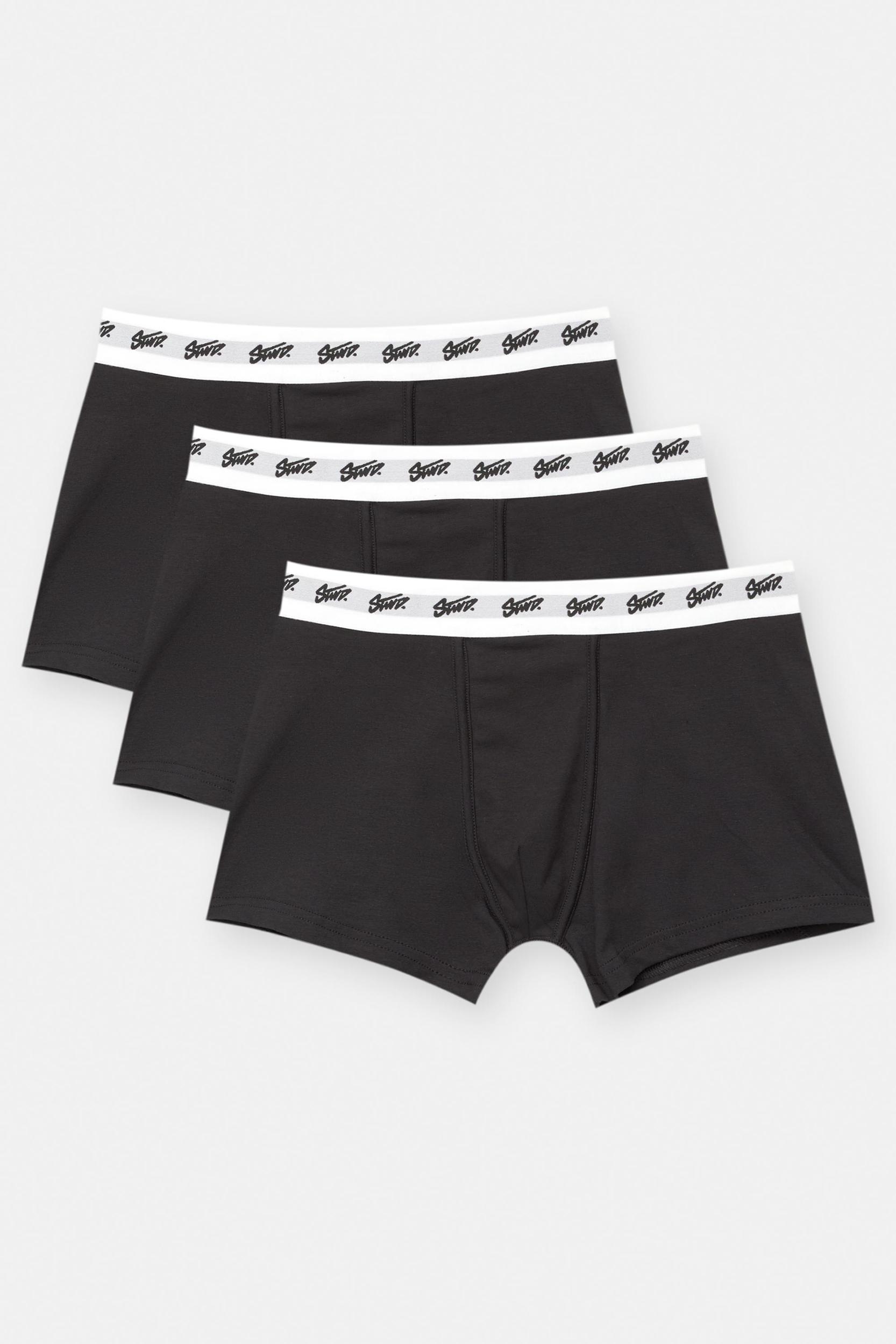 Pack of 3 black boxers with a white waistband and contrast logo. Made of stretch fabric.
