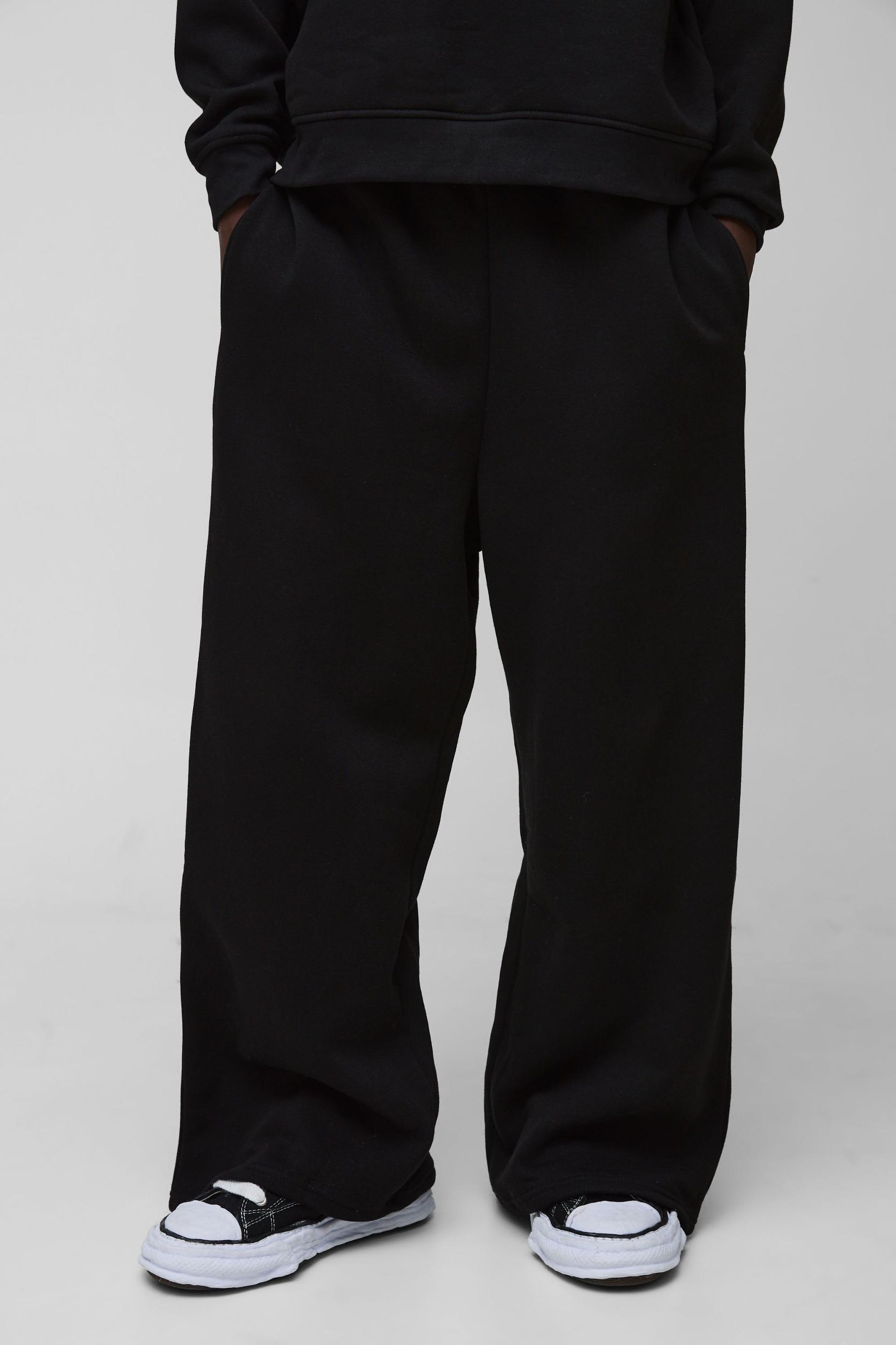 Athleisure wear for boxing your leg lines. If you like your athleisurewear with room to move or a boxier, less defined shape, then the wide leg jogger is for you. These lightweight, breathable tracksuit bottoms are designed to be functional and comfortable, so they won't let you down when you're working up a sweat or stocking up supplies for movie night. They're great for balancing bigger thighs with skinny calves - team them up with an oversized tee or hoodie and chunky trainers for a neat, boxy look that's comfy as well as being bang on trend. Style: Basic JoggersFabric: BrushbackLength: RegularProduct fit: Extreme Wide LegWeight: 330GSM