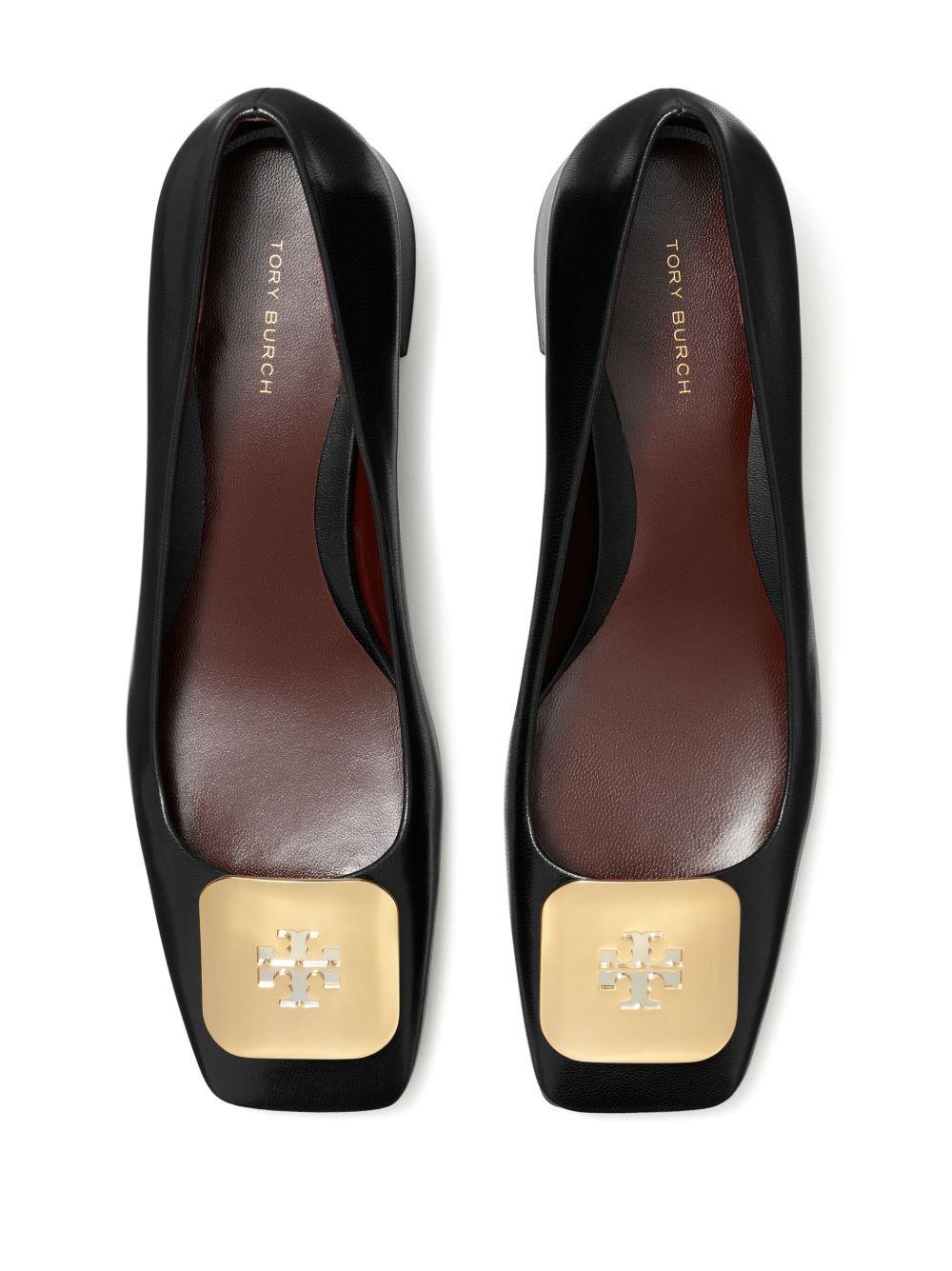 Tory Burch 35mm Georgia pumps | Black | black | nappa leather | signature Double T motif | gold-tone logo plaque | square toe | branded insole | slip-on style | mid block heel | Leather/Metal/Nappa Leather/Leather | Heeled Pumps | Pumps | Shoes | Women