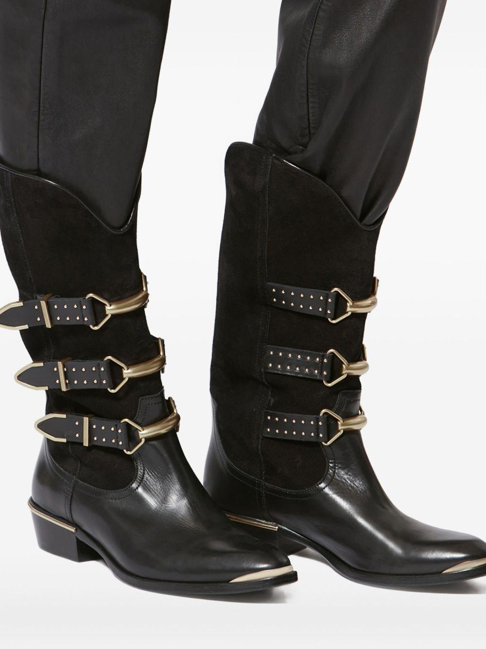 ISABEL MARANT 35mm Mexia buckle boots | Black | black | calf suede panels | calf leather panels | gold-tone hardware | buckle fastening | studded straps | Calf Suede/Calf Leather/Calf Leather/Calf Leather | Cowboy Boots | Boots | Shoes | Women