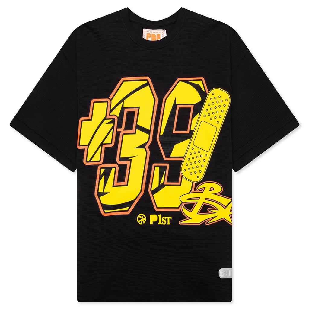 PDF Channel elevates the everyday essential with the 39 Waffle Tee—a textured statement piece crafted in Italy. Made from 100% cotton with a soft waffle knit construction, the tee delivers breathable comfort with a structured feel. Screen-printed graphics at the front and back inject bold visuals, while a custom patch detail adds a refined, signature finish. 100% Cotton Waffle fabric Crew neckline Screen-printed graphics Custom patch Style No: DFM54011TJ102PX-G0023