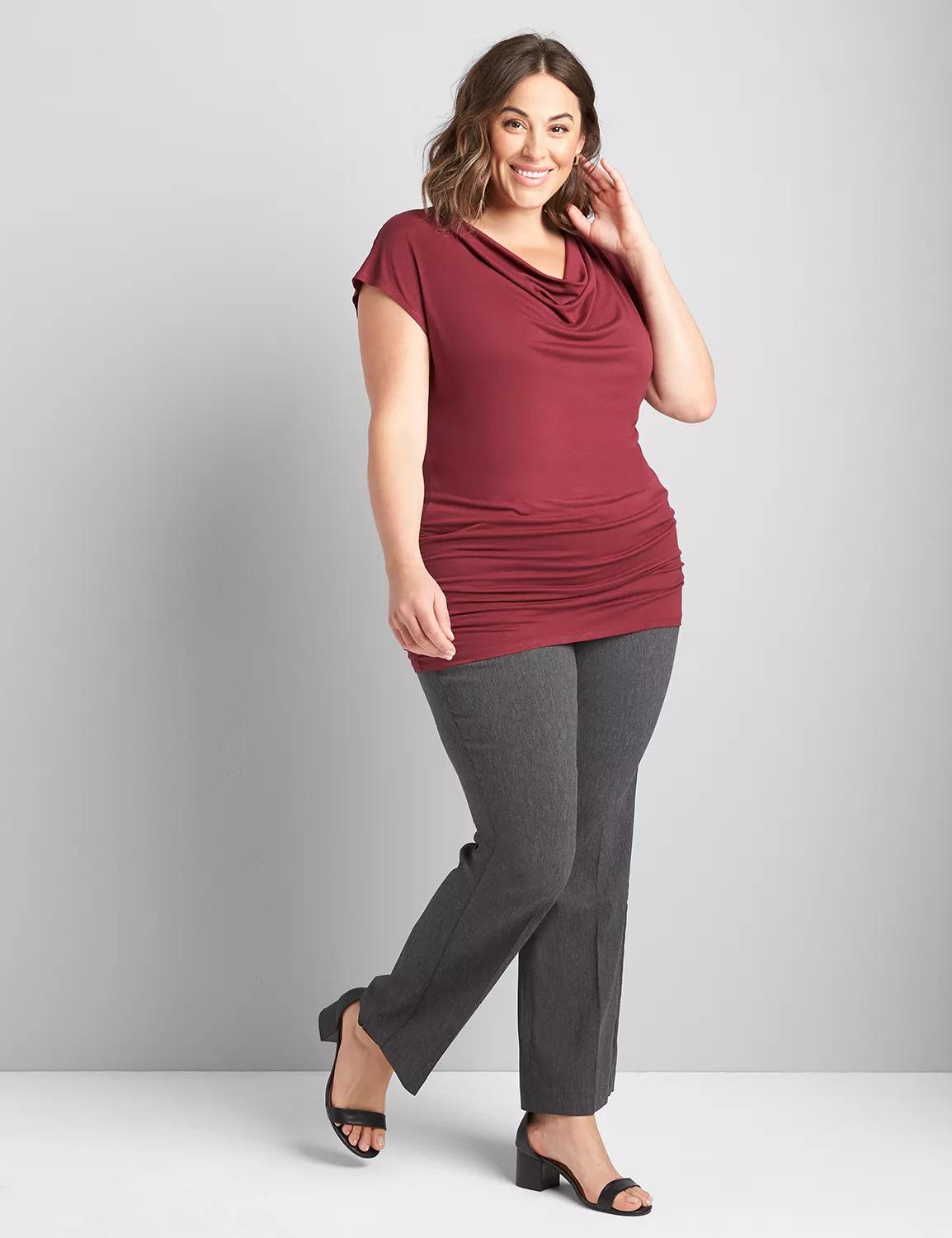 Available in Plus Size This 4-Season pant features a wear-anywhere boot cut to channel your most polished, confident silhouette yet. Dress them up with a button-front and blazer or go a little more low-key with a tucked-in tank. Our 4-Season Collection is the ultimate solution for year-round wardrobe versatility. The incredible stretch ensures everyday comfort and polish. Belt loops. Four pockets. Zip fly. Single-button closure with inner button.Contoured Elastic Waistband. Our unique waistband construction prevents gaping while providing comfort.LEG SHAPE: Boot. Hugs the body from waist to knee. Slight flare from knee to hem.INSEAM: Short 30, Regular 32, Long 35RISE: MidFABRIC: Sexy Stretch. Our most curve-hugging stretch with great recovery.Note: pockets are functional! While baste stitching helps a garment maintain shape until it hits your home, it is meant to be only temporary. Simply snip the threading to remove the stitching. I own these in 4 colors and want them all! Item Number #366312Imported Plus Size Pant . Plus Size 4-Season Boot Pants, in Grey, 12 Petite, Womens, Lane Bryant