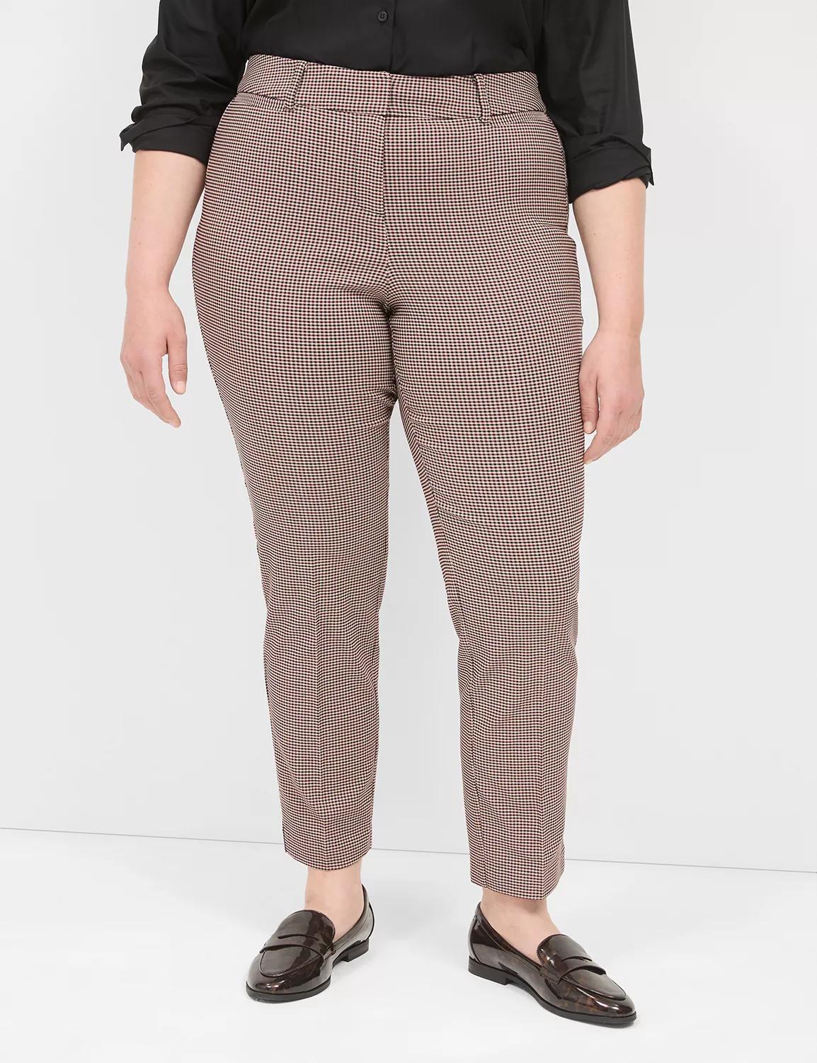 Available in Plus Size A pant thats both ahead of the curve, and fit for them too. Youll love our innovative Contoured Elastic Waistband thats designed for your silhouette, our best-selling 4-Season fabric, the pop of blue in the print and totally versatile slim ankle cut. Belt loops. Two front pockets, two back pockets. Zip fly. Double bar & slide closure with inner button. Side slits at hem. Contoured Elastic Waistband. Our unique waistband construction prevents gaping while providing comfo