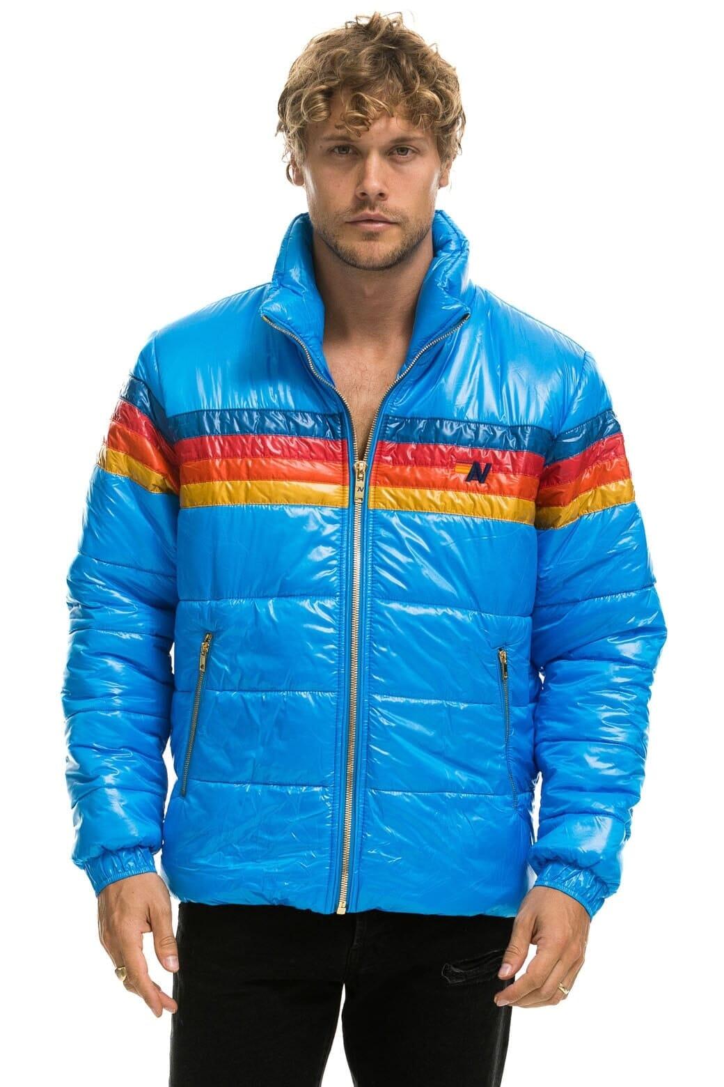 Our New Super Luxe Traveler jacket is absolutely next level. It's flashy, sexy, super light and warm. So cozy you'll want to sleep in it. This jacket is everything you need to hit the slopes in style! Durable enough to shred in but stylish enough for the after party too. The exterior is our new super LUXE soft and shiny nylon. We added a special water proof finish just in case you get caught in a snow storm. The insulation is Primaloft gold 200gm to keep you warm without weighing you down. Get ready to turn heads all over the mountain. Staying true to the Aviator Nation brand these jackets reflect the retro California vibes we are proud to call our own. They're handmade in LA with imported materials. This jacket runs true to size to the rest of the Aviator Nation collection. We'd advise getting the same size in the jacket as you would a hoodie. Model is wearing size L