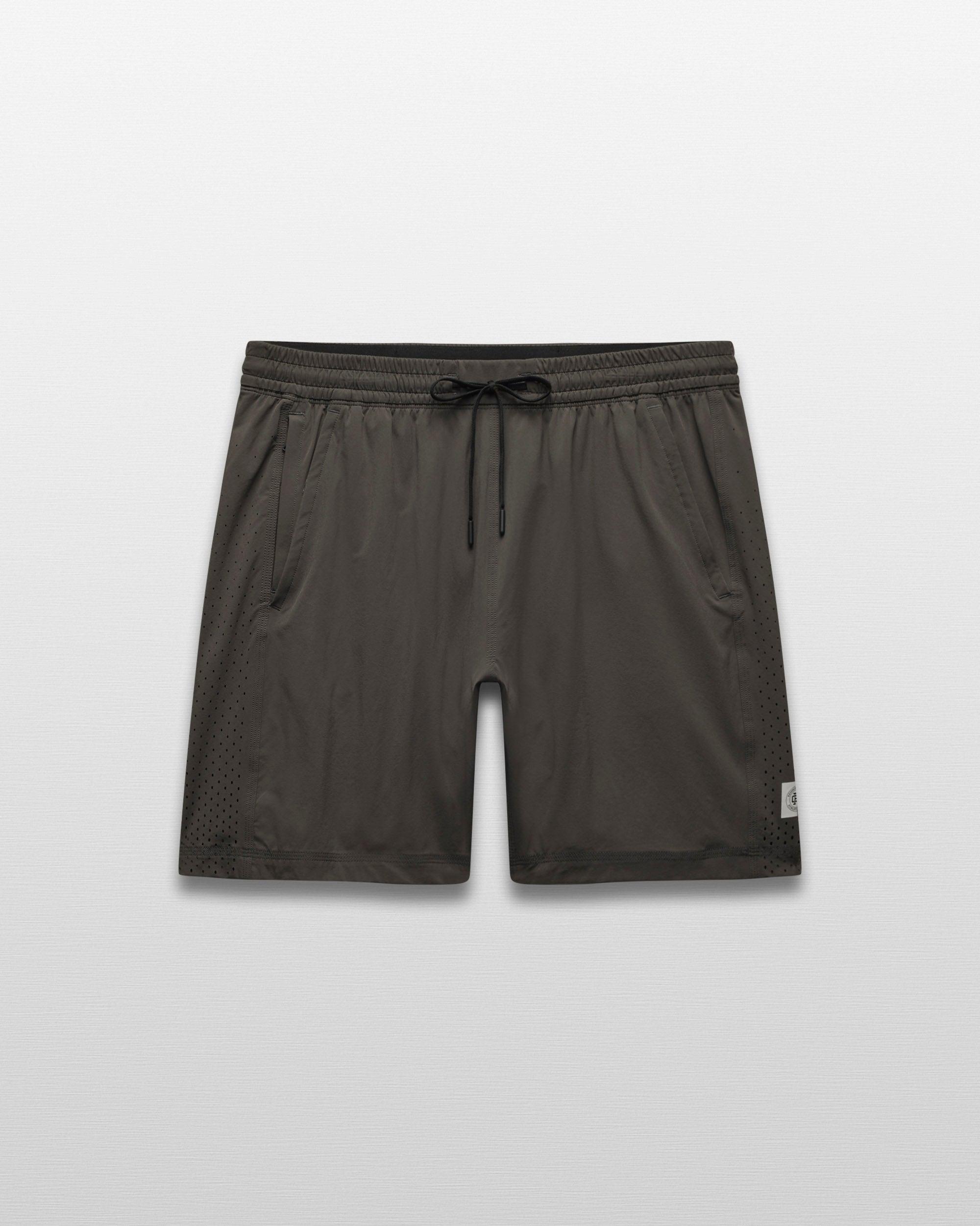 Overview Our all-purpose active short made from lightweight stretch nylon, with moisture wicking ability and resistance to pilling and abrasion. Featuring a full-cut standard fit and 7" inseam length. Designed with laser-cut mesh side panels, soft mesh waistband, slash pockets, and a sweat-resistant zip pocket for your phone or small essentials. Details 7" inseam 4-way stretch Quick drying Moisture wicking Abrasion resistant Unlined Flatlock seams Laser-cut mesh side panels Breathable mesh waistband Tipped drawcord Mesh-lined front pockets Sweat-resistant YKK Vislon zip pocket Made in Sri Lanka Style: RC-5652 XS S M L XL XXL Waist Width 33 35.5 38 42 46 49.5 Front Rise 26.5 27.5 29 31 32.5 34.5 Inseam Length 18 18 18 18 18 18 Leg Opening 28 29 30.5 32.5 34.5 36