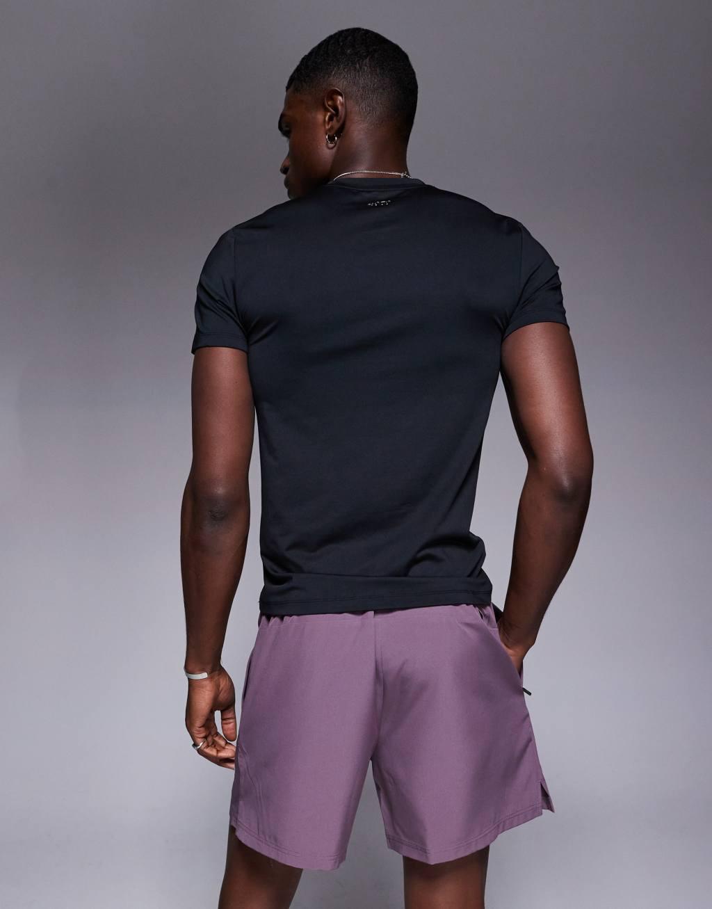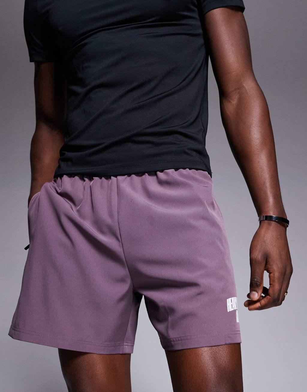 4505 7 inch wide leg quick dry graphic training shorts with towel loop and zip pockets in grape