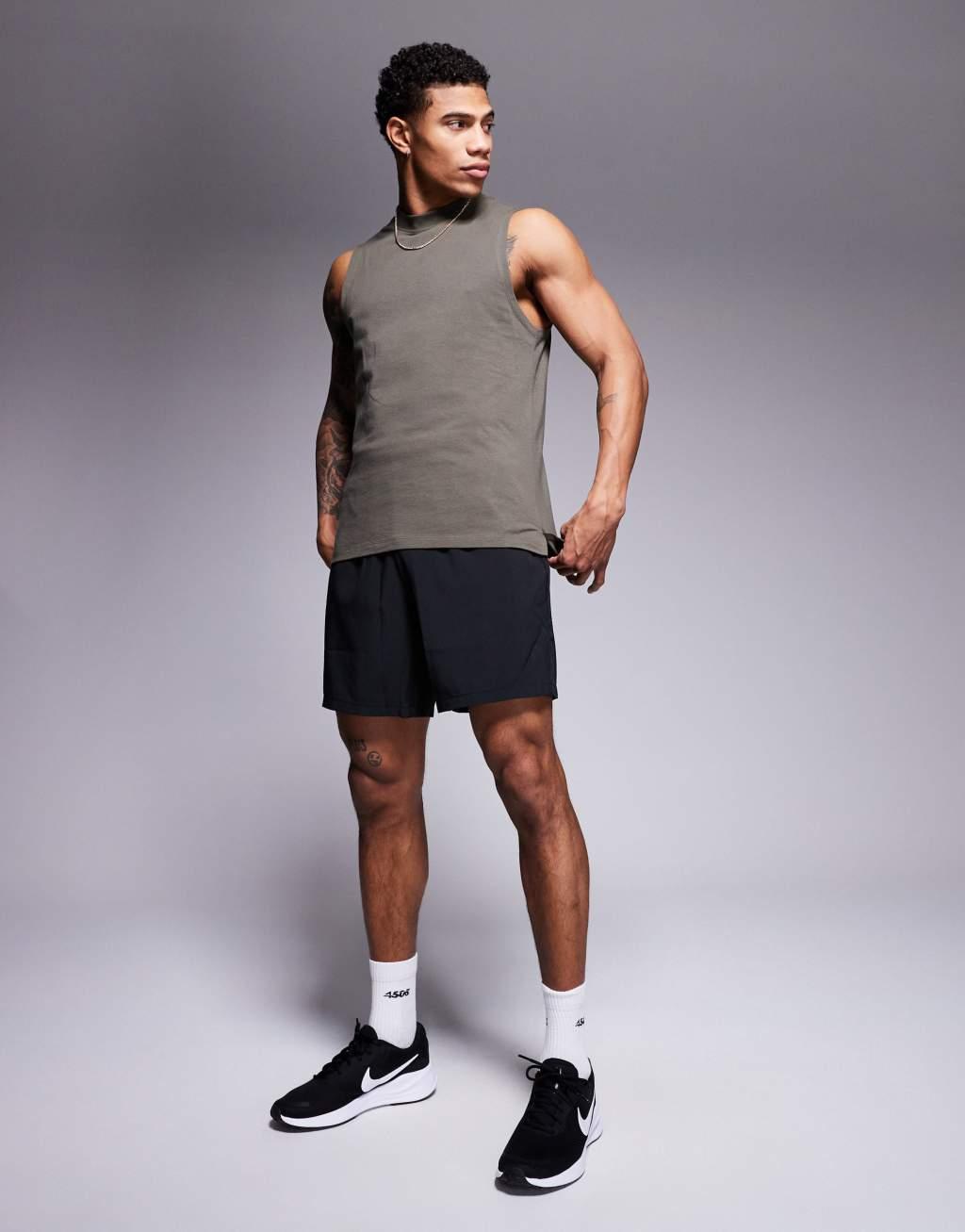 4505 Icon cotton training tank top with quick dry finish in khaki green