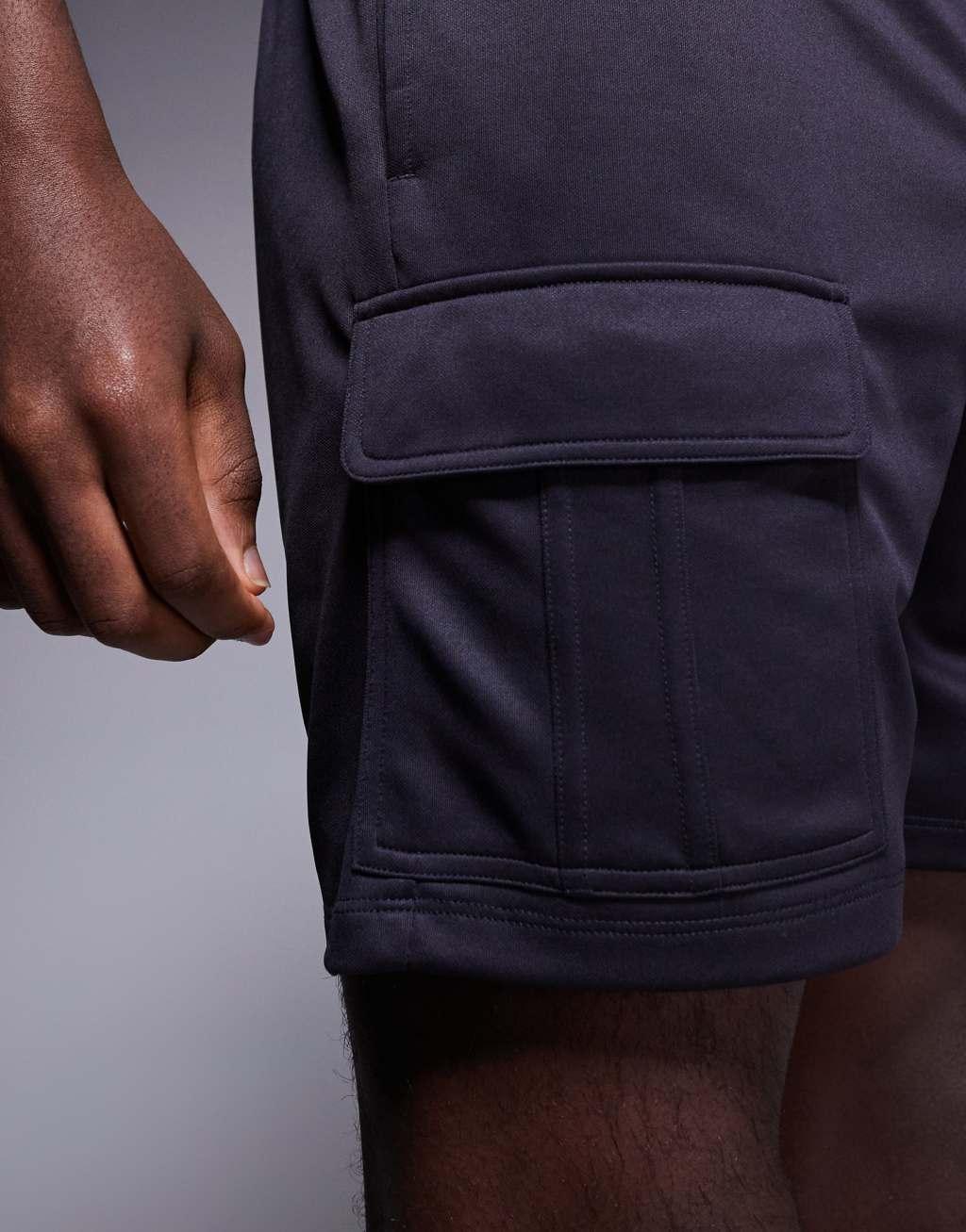 4505 poly tricot training cargo shorts in charcoal