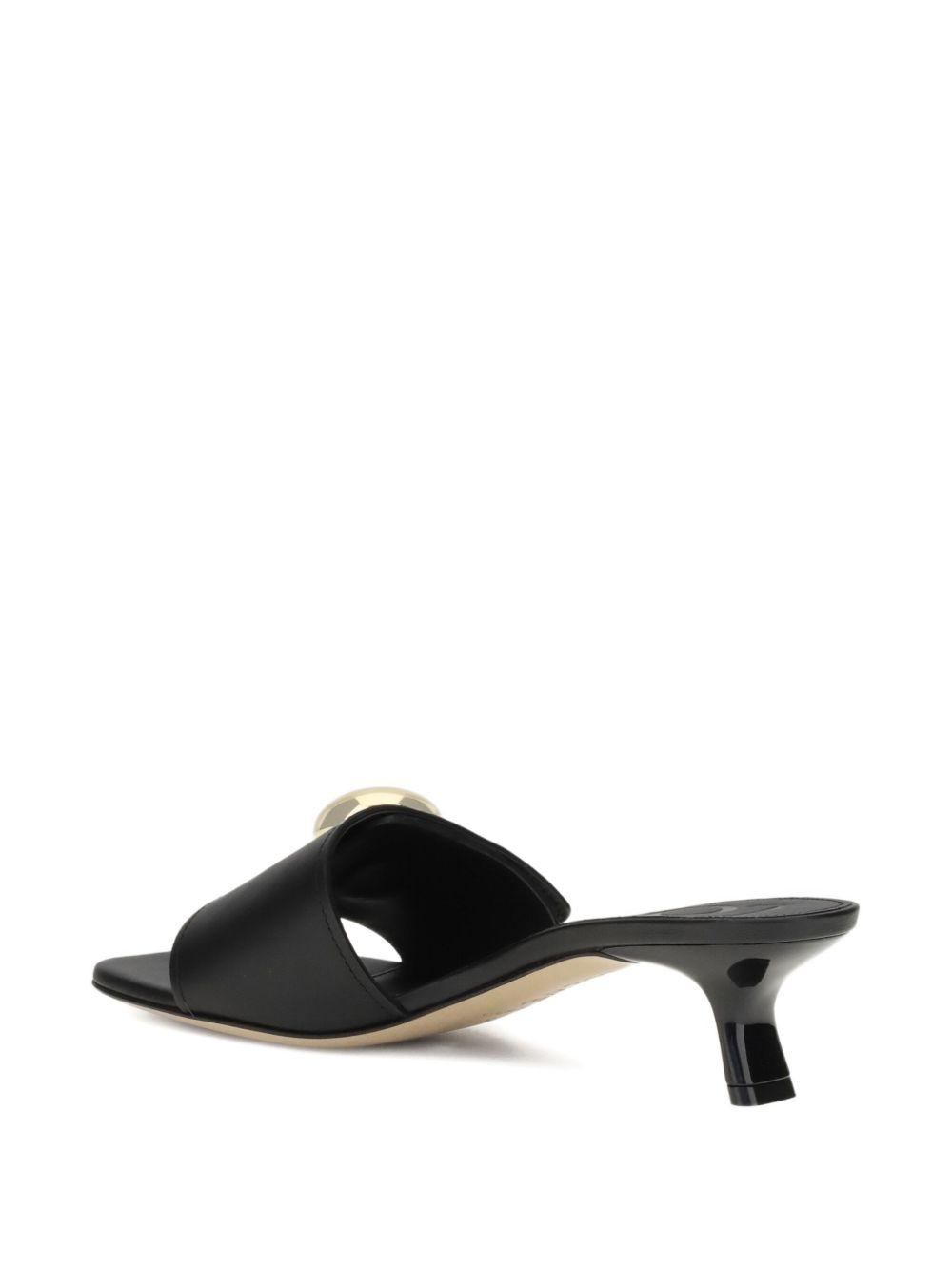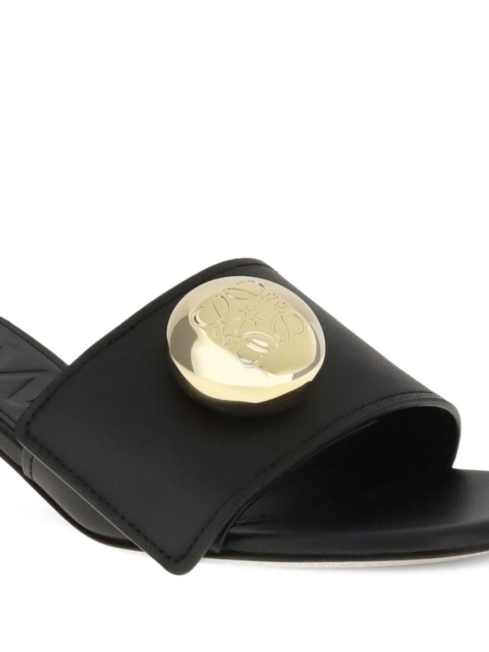 LOEWE 450mm pebble-embellished leather sandals | Black | black | leather upper | gold-tone button embellishment | low kitten heel | open toe | slip-on style | Calf Leather/Calf Leather/Calf Leather | Heeled Sandals | Sandals | Shoes | Women