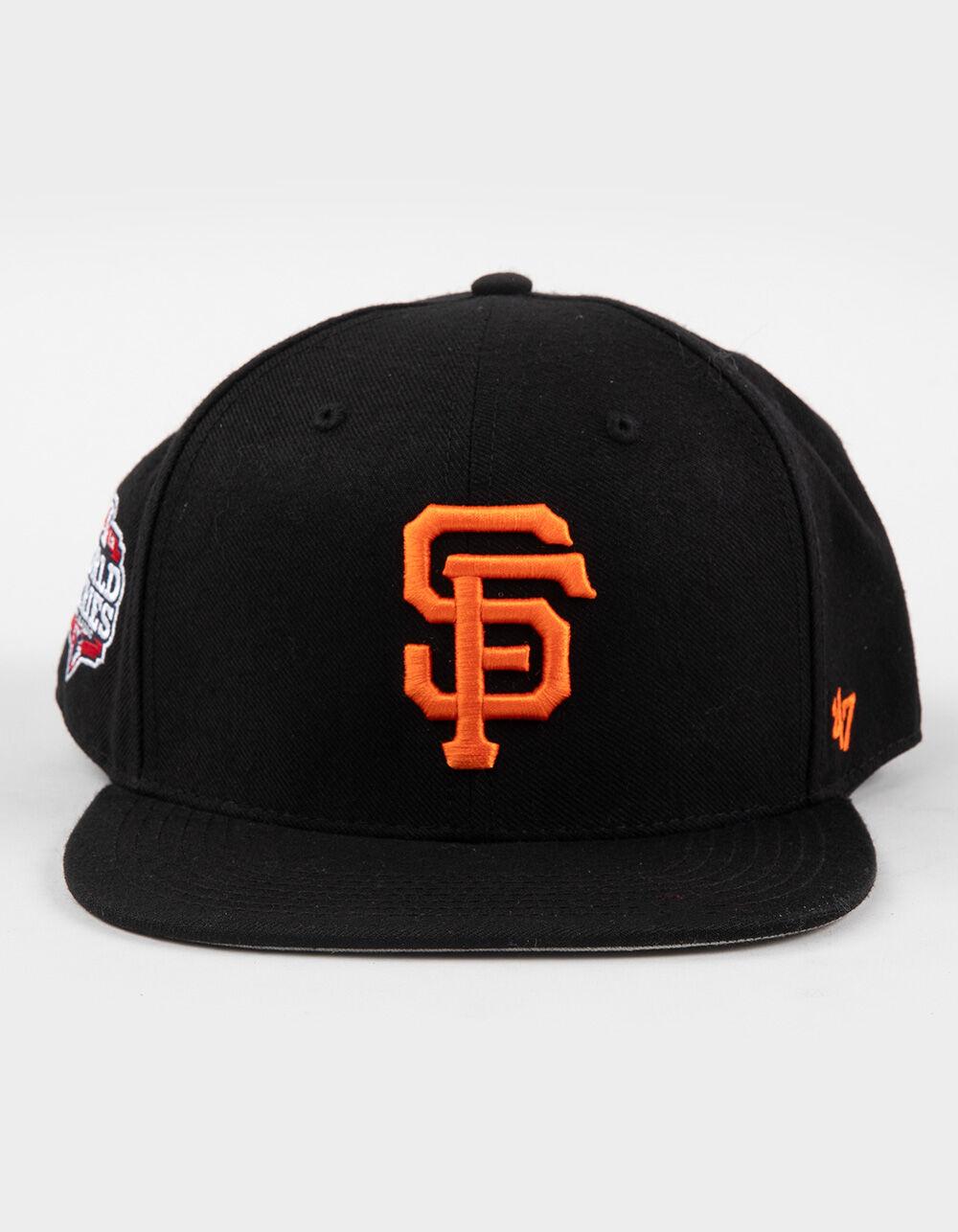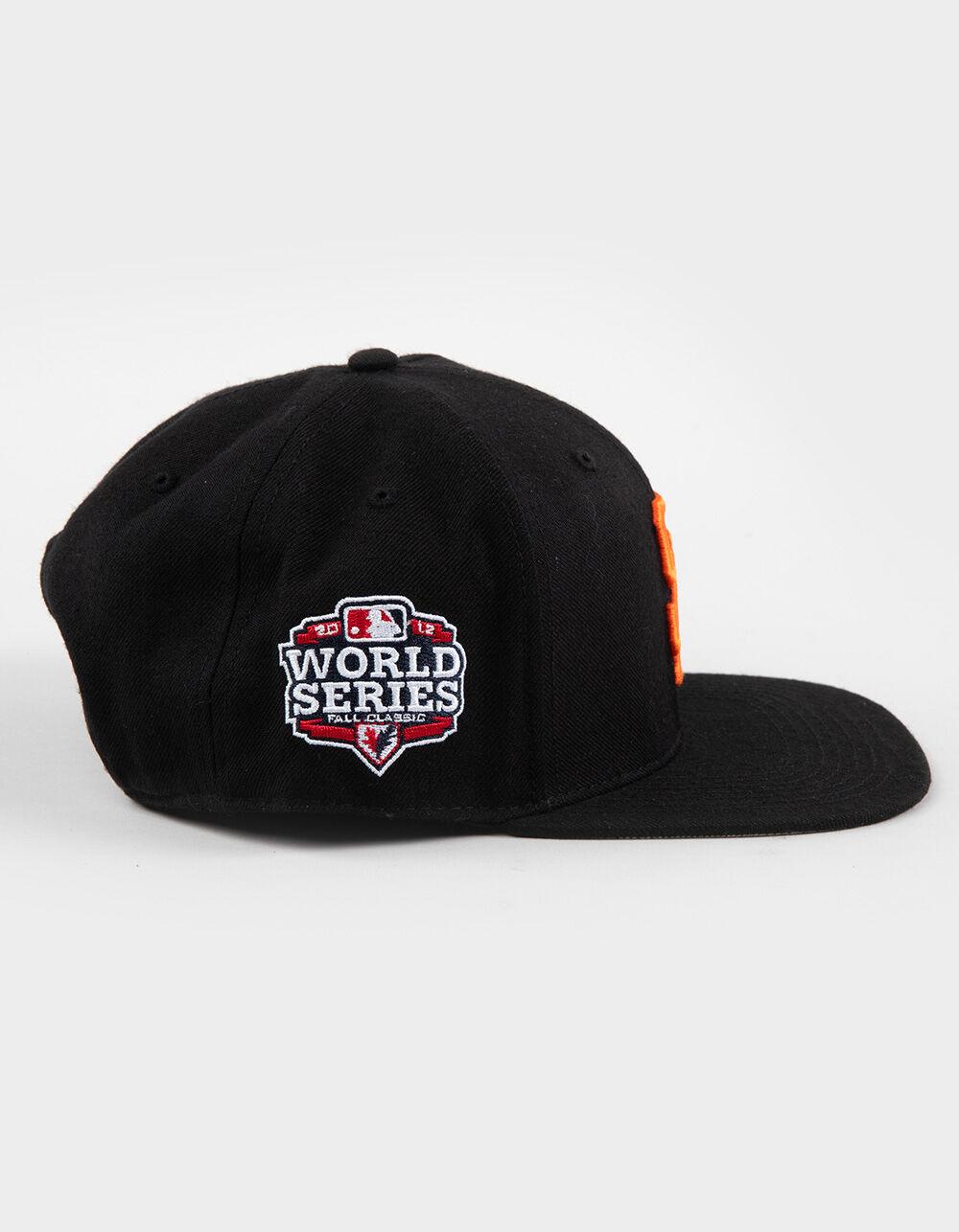 47 Brand San Francisco Giants 2012 World Series '47 Captain Snapback Hat. Raised embroidery logo on front. '47 logo embroidery on left side. 2012 World Series logo on left side. Flat bill. Adjustable snapback closure. 80% Acrylic 20% Wool. Spot clean. Imported.