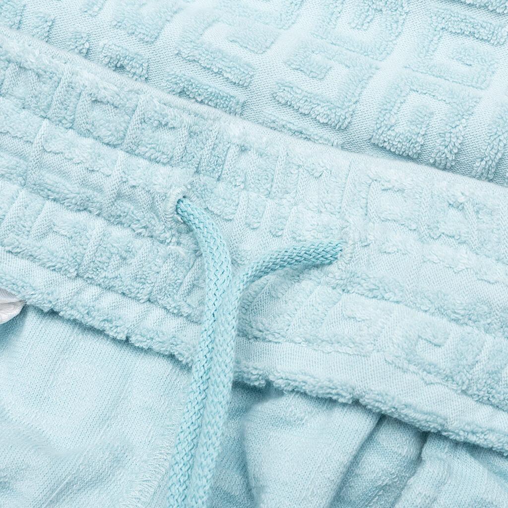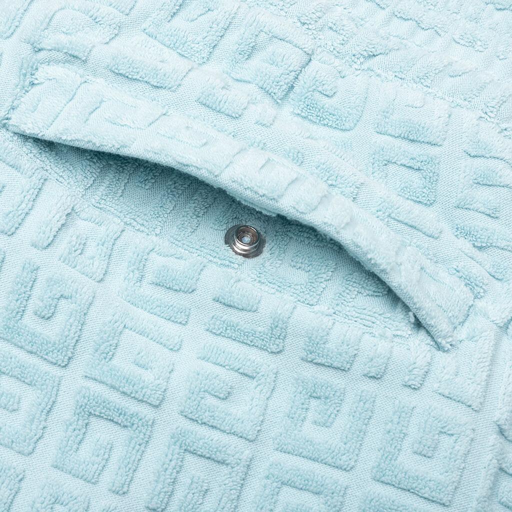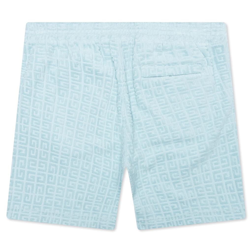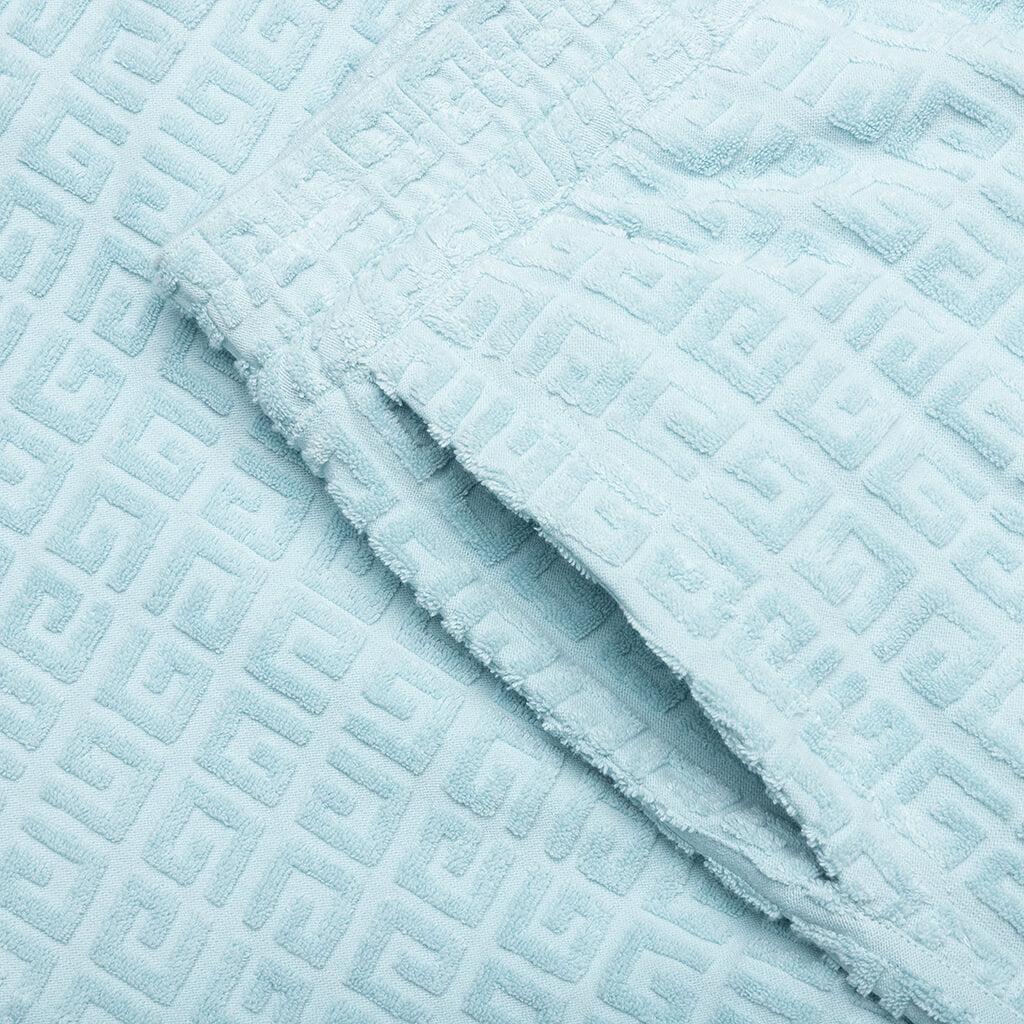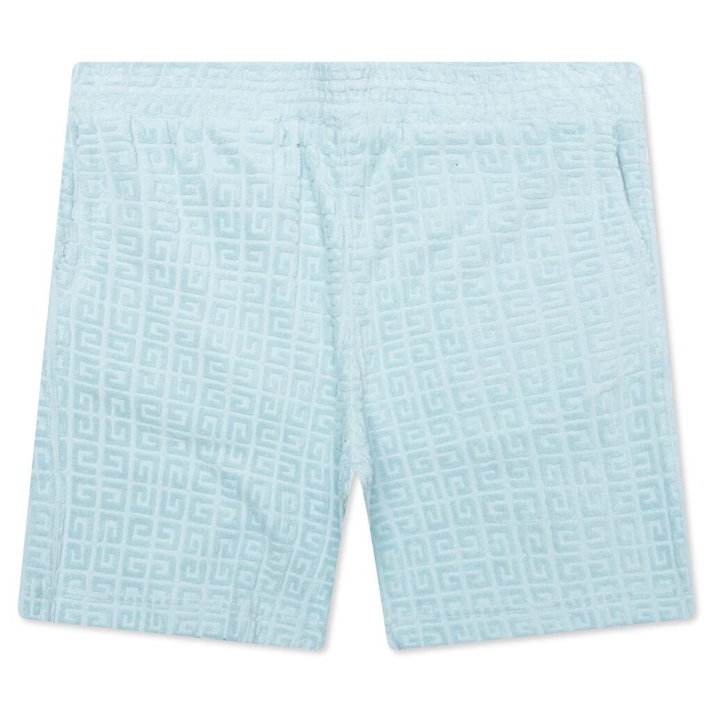 The 4G Cotton Towelling Bermuda Shorts in Sky Blue offer a perfect blend of comfort and luxury. Crafted from jacquard cotton towelling, these shorts feature an elastic waistband for easy wear and comfort. The raised 4G pattern adds a subtle yet distinctive texture throughout. With two side pockets and one back pocket, these shorts are both stylish and practical, making them an ideal choice for laid-back days. Bermuda shorts in jacquard cotton towelling Elastic waist Raised 4G pattern all-over Two side pockets One back pocket Style No: BM515J3YF0450