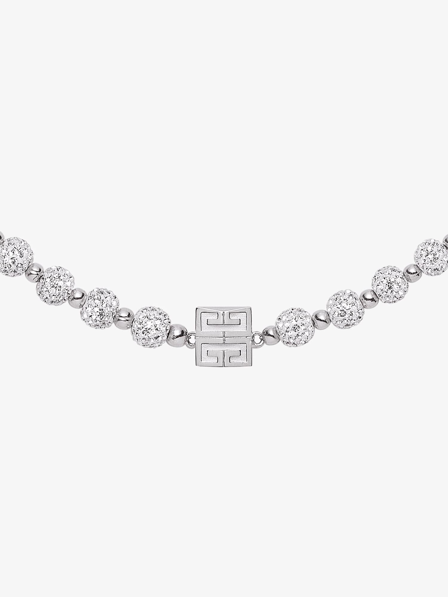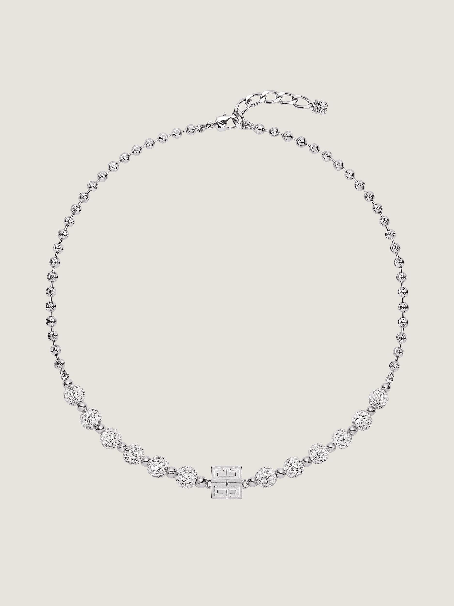 Necklace in silvery-finish metal and crystals. 4G line. 4G emblem in silvery-finished polished and brushed metal and Swarovski crystals. Adjustment chain with 4G plaque. Adjustable chain length: 1.4. Matching bracelet, ring and earrings sold separately.