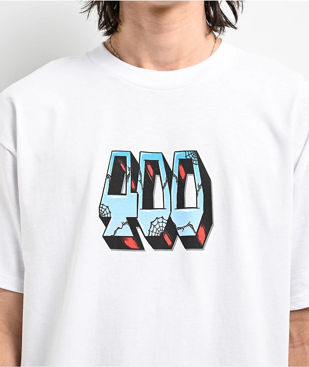 Coming in a crisp white colorway, the Block Buster t-shirt features 4Hunnid logo text at the chest and back in blue block lettering and spiderweb details giving it a cartoon aesthetic. Complete with a crewneckline and a midweight construction, this g