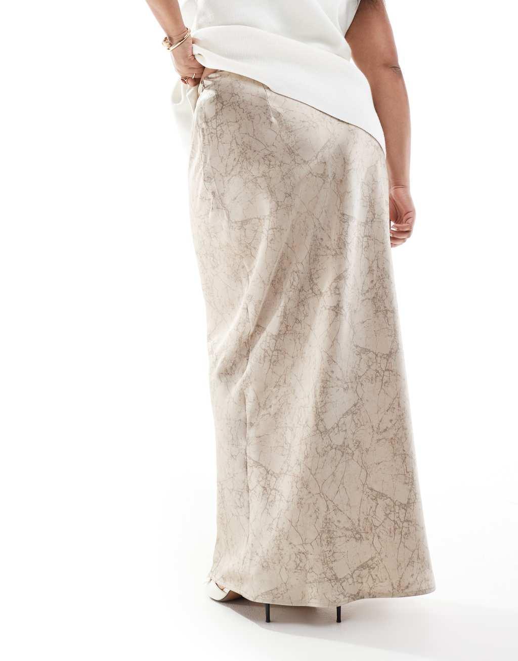 4th & Reckless Plus satin maxi skirt in beige snake print