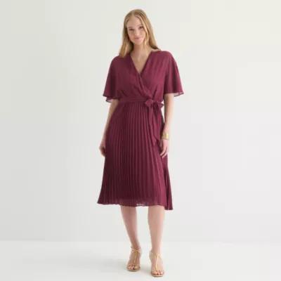 52seven Womens Short Sleeve Midi Fit + Flare Dress